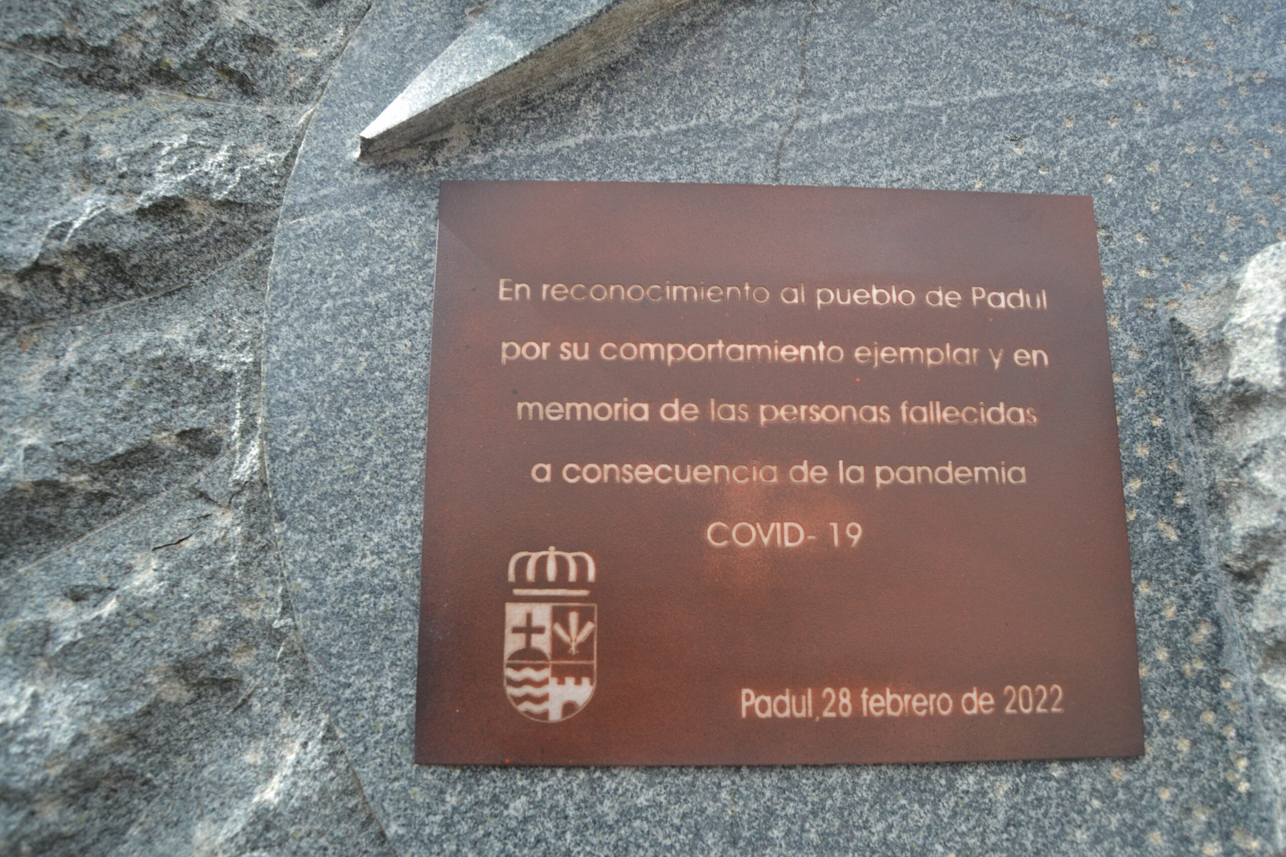 “Han sido centenares de paduleños y paduleños por lo que se hace muy difícil enumerar uno a uno a todos ellos. Qué mejor modo de hacerlo que agrupándolos a todos bajo lo que somos, un pueblo. Que este monolito sea testigo por siempre del comportamiento ejemplar del pueblo de Padul y memoria eterna para los vecinos y vecinas fallecidos por la pandemia, para los que pido que guardemos un minuto de silencio antes de descubrir el monolito”, ha explicado el alcalde.