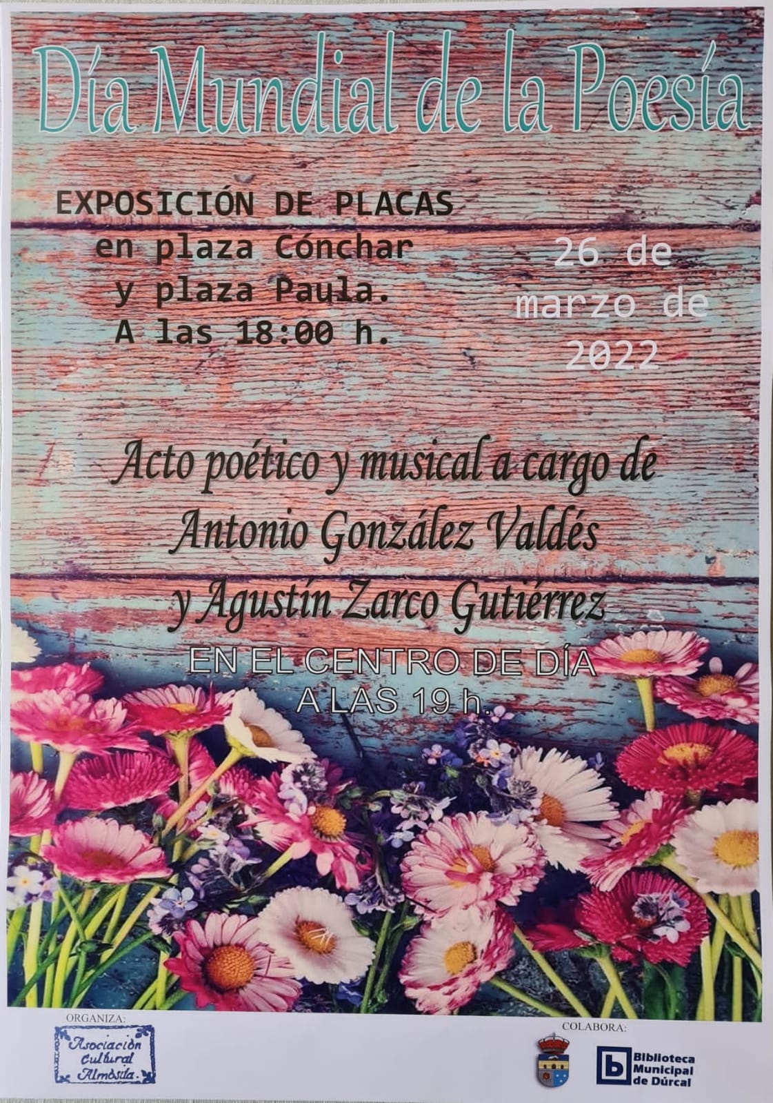 La Asociación Cultural Almósita volverá a llenar las calles de Dúrcal de poesía continuando con su iniciativa “Ruta Poética”, a través de la cual colocan placas con poemas en diferentes lugares emblemáticos del municipio para conmemorar el Día Mundial de la poesía.