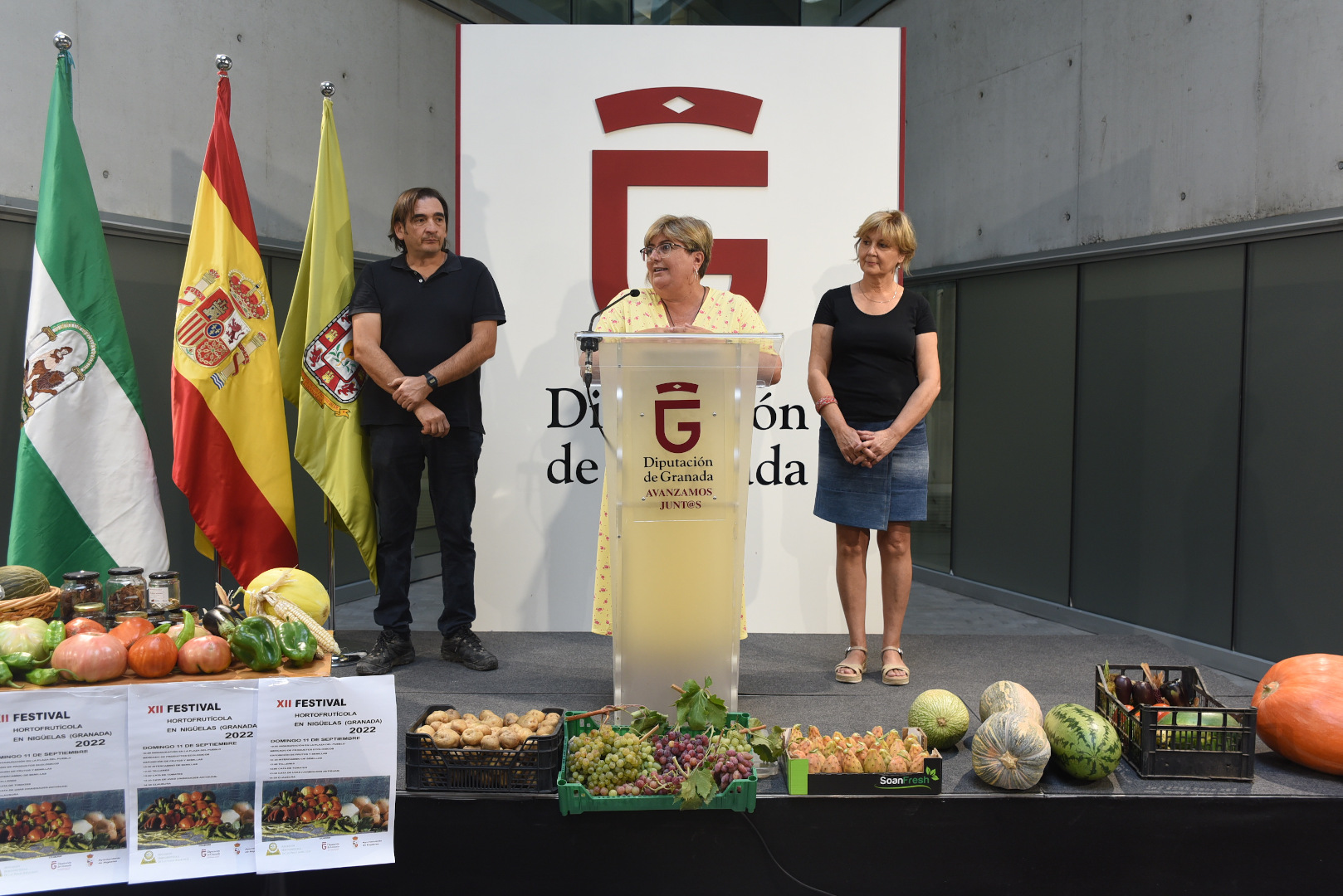 La feria ha sido presentada esta mañana por la diputada de Empleo y Desarrollo Sostenible, Ana Muñoz, la concejala de Cultura de Nigüelas, Trinidad Tapia, y el presidente de la asociación Hortoan, José Miguel Romero.