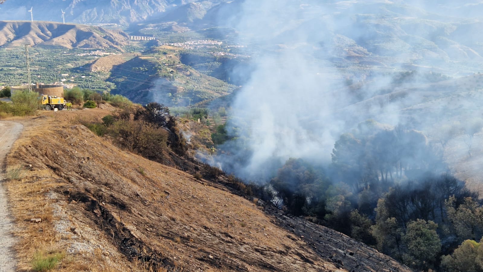 El humo ha vuelto a poner sobre aviso esta mañana a los vecinos y vecinas de El Valle. Un conato de incendio se ha desatado un poco antes de las nueve cerca de la zona de acampada de ValleSocout camino de la sierra desde Restábal.
