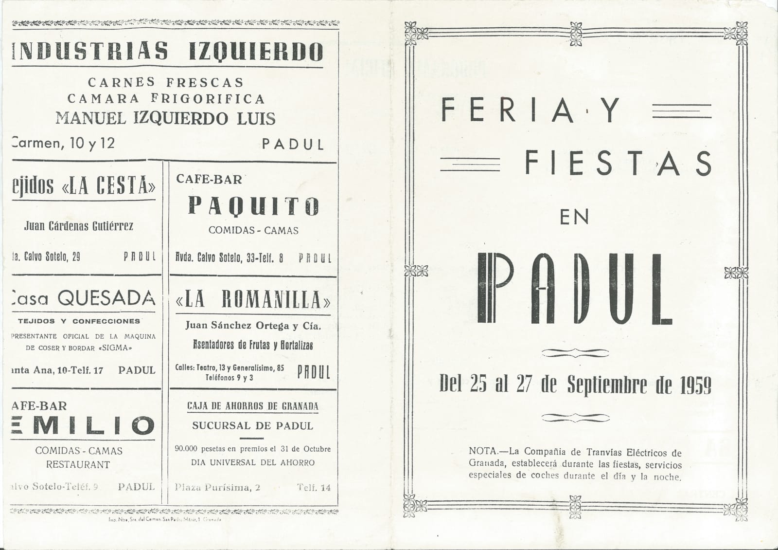 -Feria del Padul- En los días veinte y cinco, veinte y seis y veinte y siete del corriente tendrá efecto la que le fue concedida a esta Villa en el año anterior.