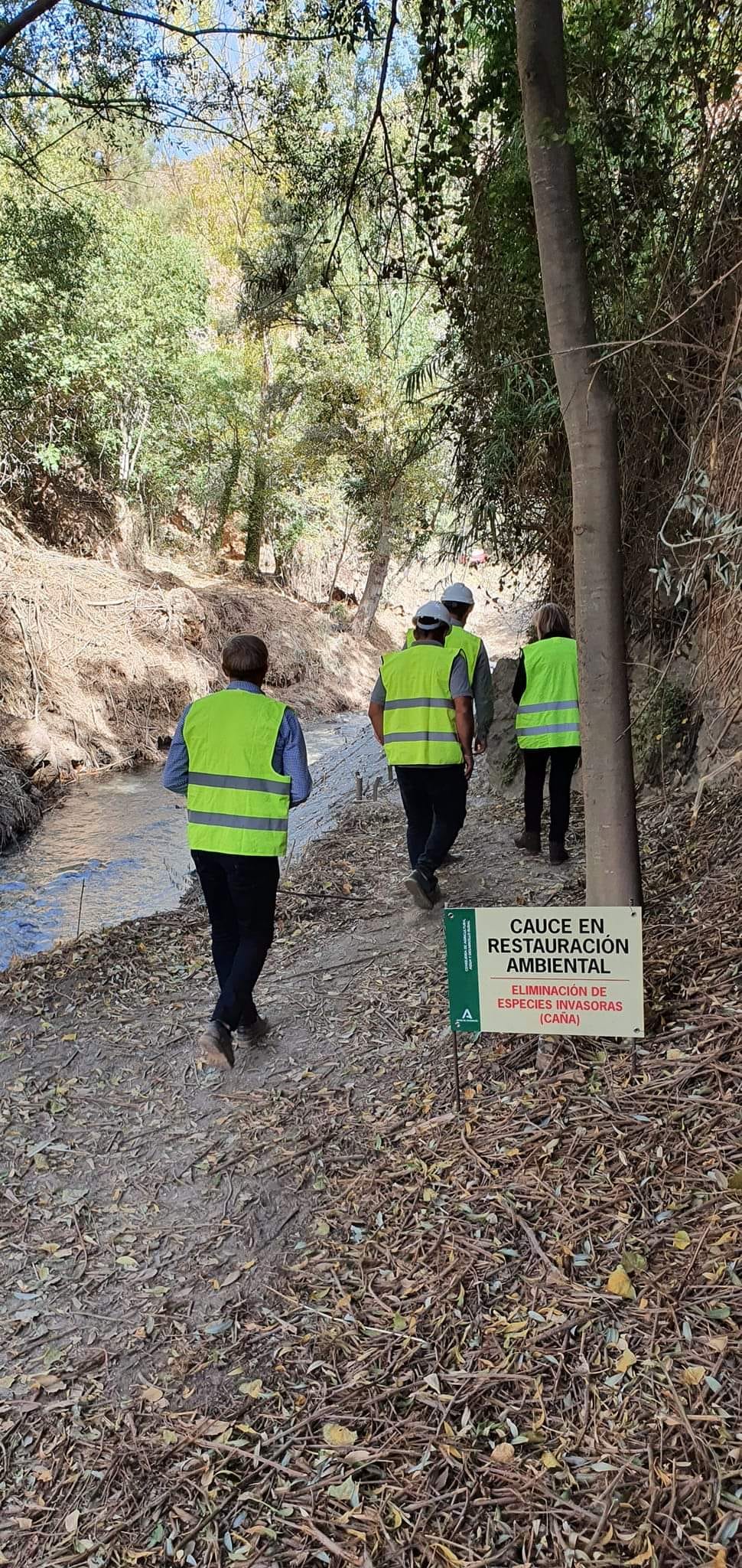 Celia Santiago ha comprobado el buen ritmo al que avanzan los trabajos que se desarrollan dentro del programa de restauración de cauces y de puesta en valor de los entornos de la Junta de Andalucía, “al eliminar la caña se da la posibilidad a las especies autóctonas para que se puedan desarrollar libremente. Además, su eliminación evita que, si se producen lluvias torrenciales provoquen tapones que podrían afectar a las fincas colindantes, en un entorno con tanto potencial y ecológico, medioambiental e histórico”, ha explicado la delegada.
