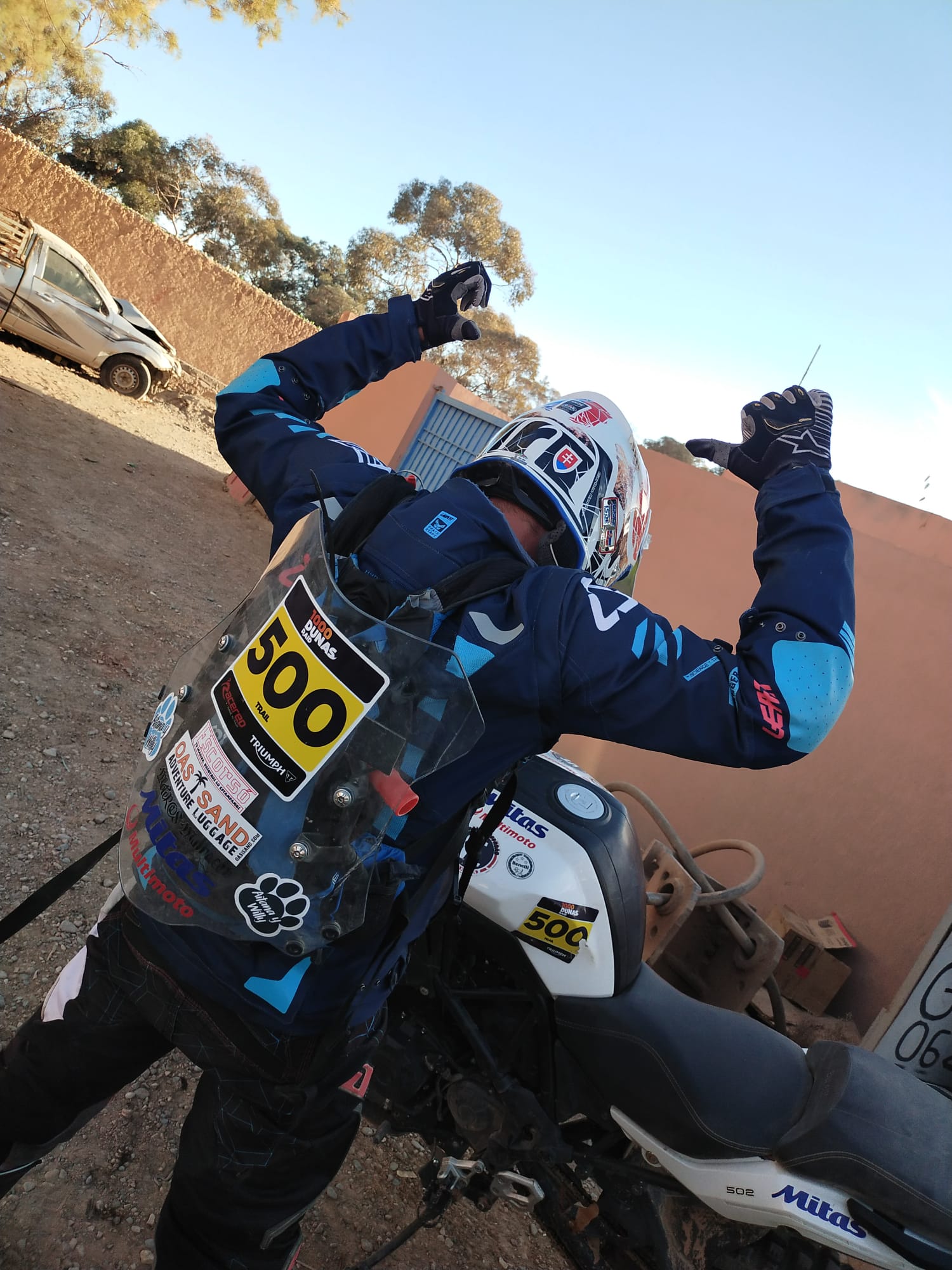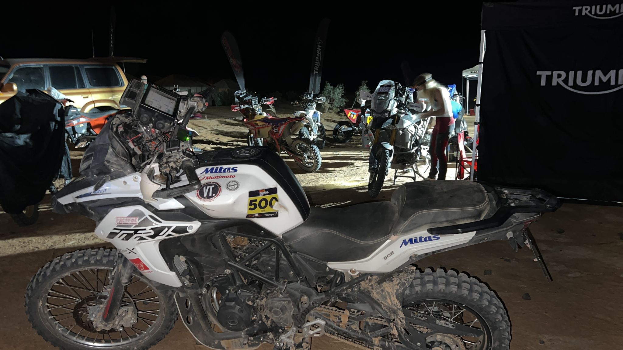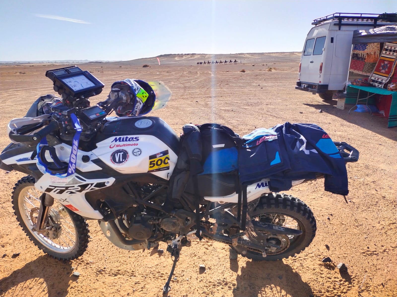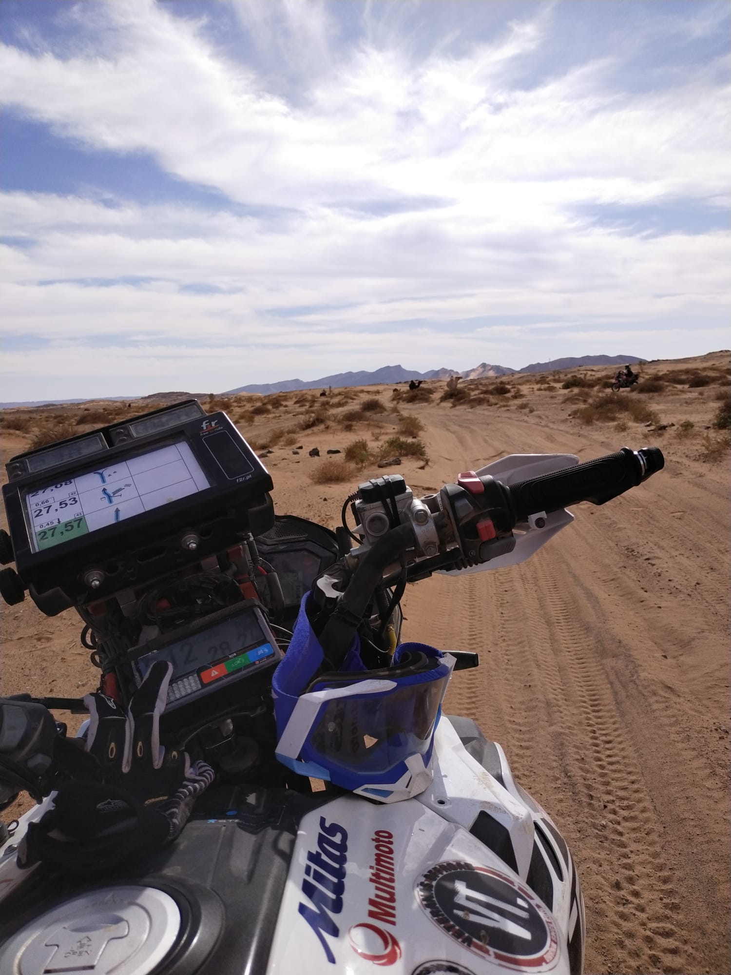 Te levantas a las 5:30, desayunas muy rápido, recoges el bolso y todos tus enseres, saco de dormir ropa etc, lo cargas todo en el camión de la asistencia, te pones la equipación de la moto, te presentas en el brifienf, recoges el roadbook del día, haces las modificaciones de este que son cambios de última hora, anotas en la hoja de ruta los cambios de cap, viñetas y rumbos que indique la organización, montas el roadbook en la moto, y para las 7:30 tiene que estar todo esto realizado ya que es la salida… ¡Hay que hacer todo super rápido sin parar! Dan la salida y una vez metido en la carrera no paras hasta llegar al refuelling para poder repostar, solía llegar sobre las 21:00 horas, había días que incluso a las 22:30… Cuando llegaba me cambiaba y quitaba la equipación, cenaba y me ponía hacerle las mecánicas a las motos tanto mías como la de mi compañero de equipo, y sobre las 1 o 2 de la madrugada me acostaba, durmiendo así una media de 3 horas al día.Por mucho que exprese y cuente se queda corto para manifestar la dureza de esta prueba, pero lo he disfrutado muchísimo y sin duda haré lo posible para estar en próximas ediciones.