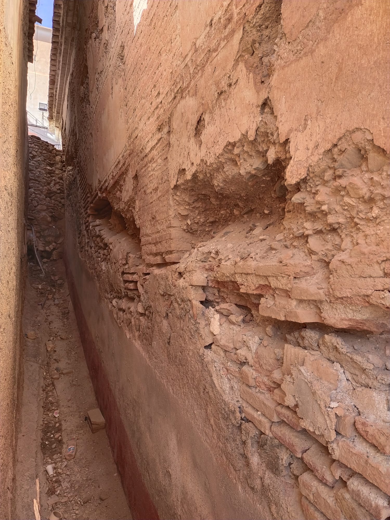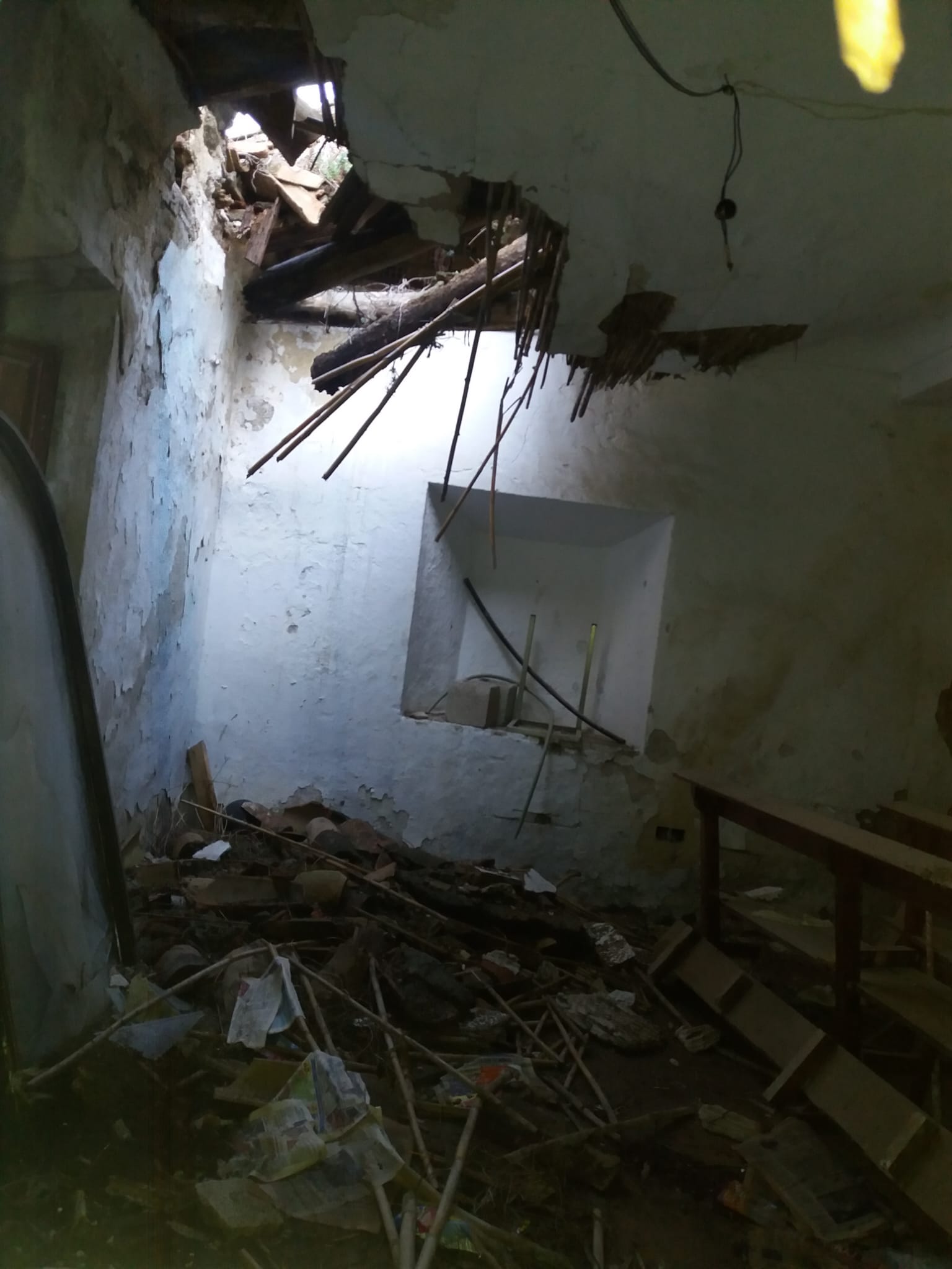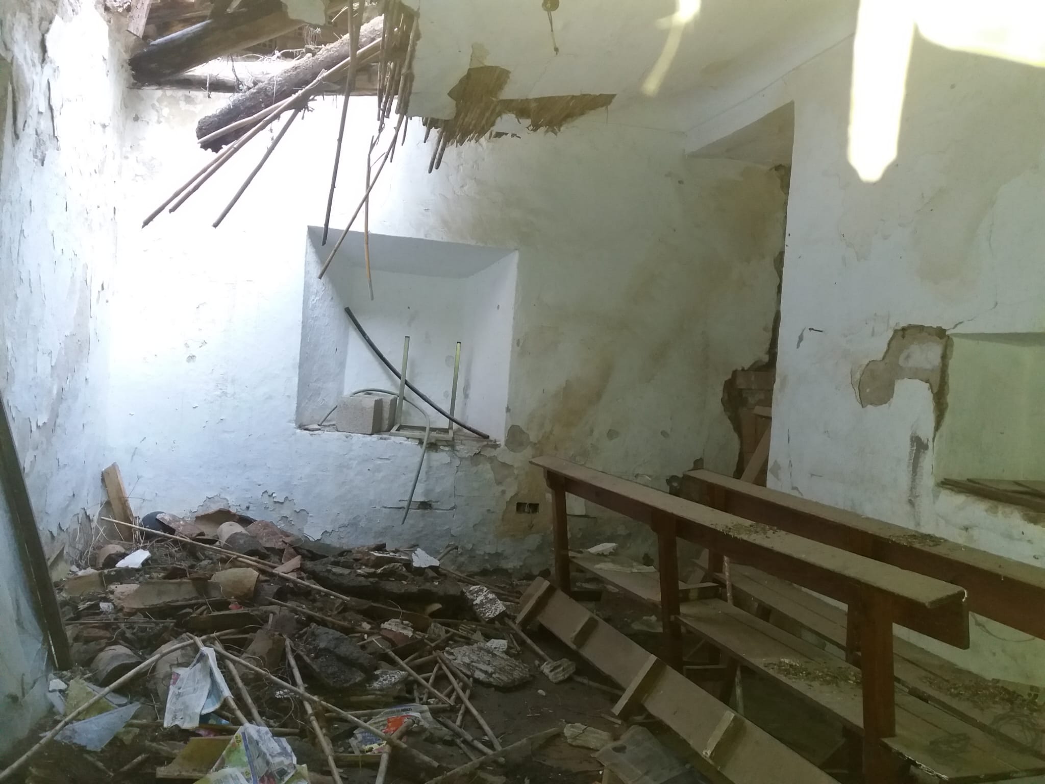 El templo, que data del siglo XVI, acumula numerosos desperfectos sobre todo en el tejado donde hay que retirar las tejas en mal estado y reponerla. Además el edificio presenta socavones en los muros de la parte exterior y humedades en las paredes y techos en el interior. La peor parte se la lleva la sacristía cuyo techo que estaba totalmente desprendido va a quedar, tras la intervención, al descubierto a modo de patio, “porque el presupuesto no nos da para más”, asegura Inma.