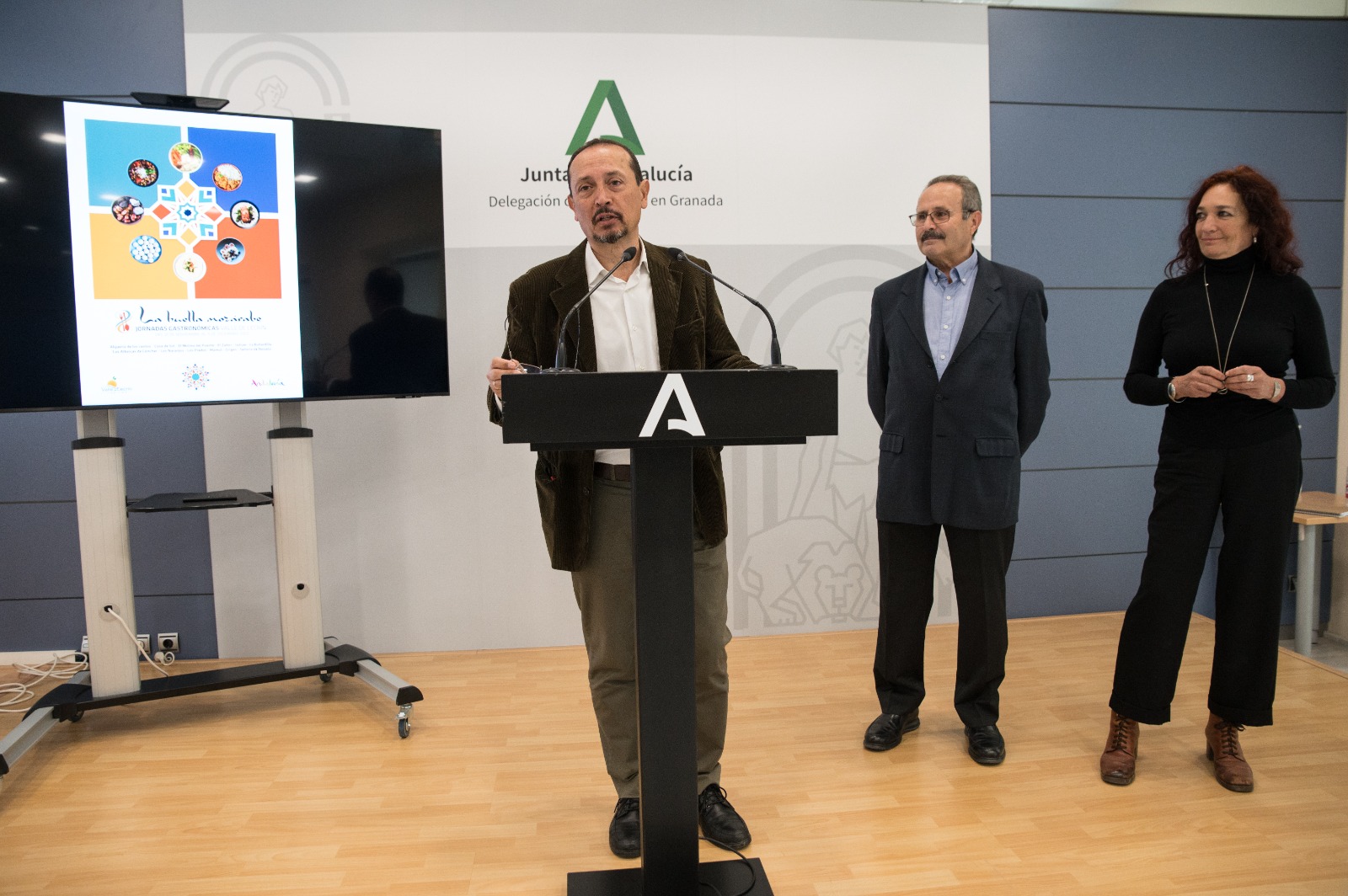 El delegado de Turismo, Cultura y Deporte, Fernando Egea, el presidente de la Asociación de Turismo del Valle de Lecrín, Isaías Padial y la gastrónoma María ‘Pimientos’ han presentado hoy, en la sede de la Delegación del Gobierno, las jornadas en las que participan 11 restaurantes de la comarca que, a lo largo de estos días, ofertarán platos con reminiscencias mozárabes cargados de cultura, sabor y mucha esencia.