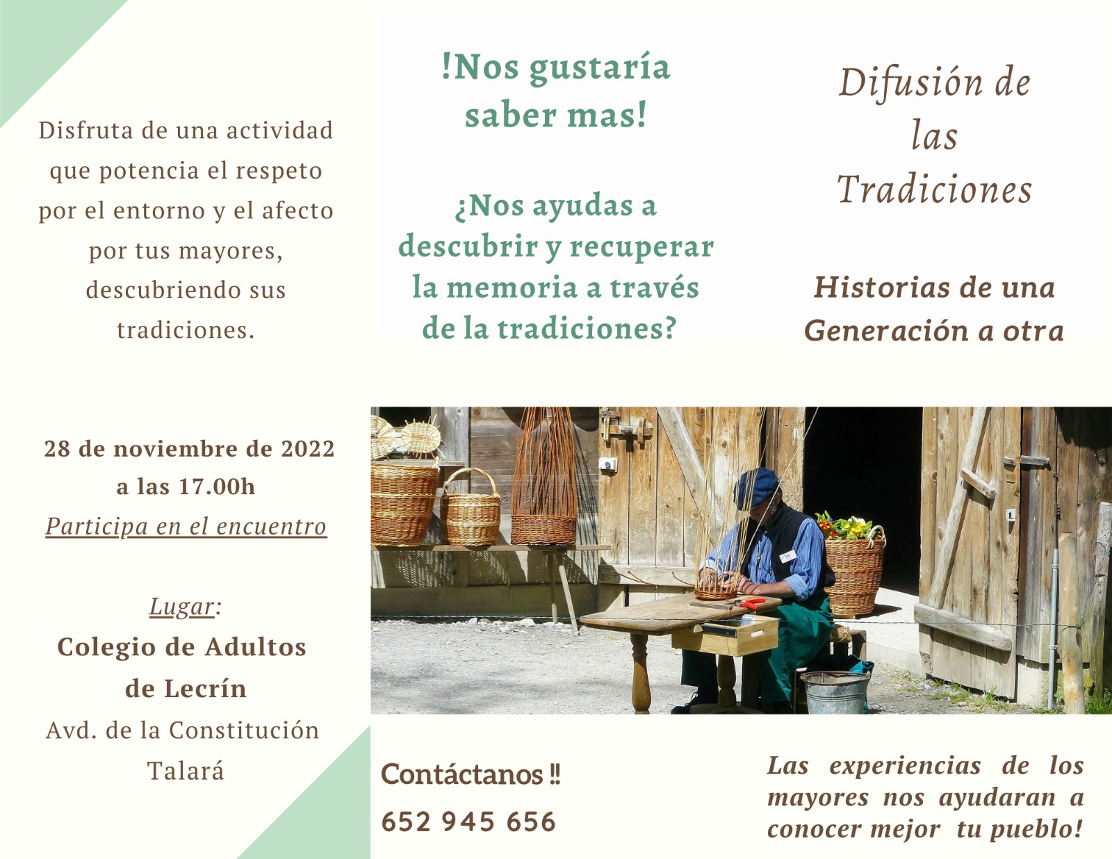 Se buscan jóvenes dispuestos a difundir las tradiciones de Lecrín