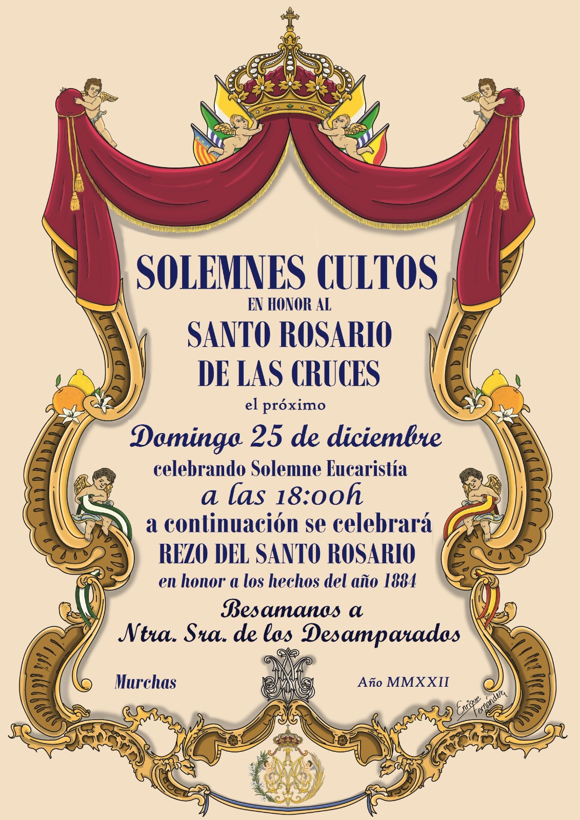 Cómo cada año y como marca la tradición en nuestro pueblo, mañana domingo 25 de diciembre, celebraremos una de nuestras tradiciones más arraigadas, el Santo Rosario de las Cruces en honor a los hechos acaecidos en el año 1884 tras los milagros otorgados a nuestra patrona ante el devastador terremoto que asoló a las comarcas del Valle de Lecrín, Alhama de Granada y Arenas del Rey.