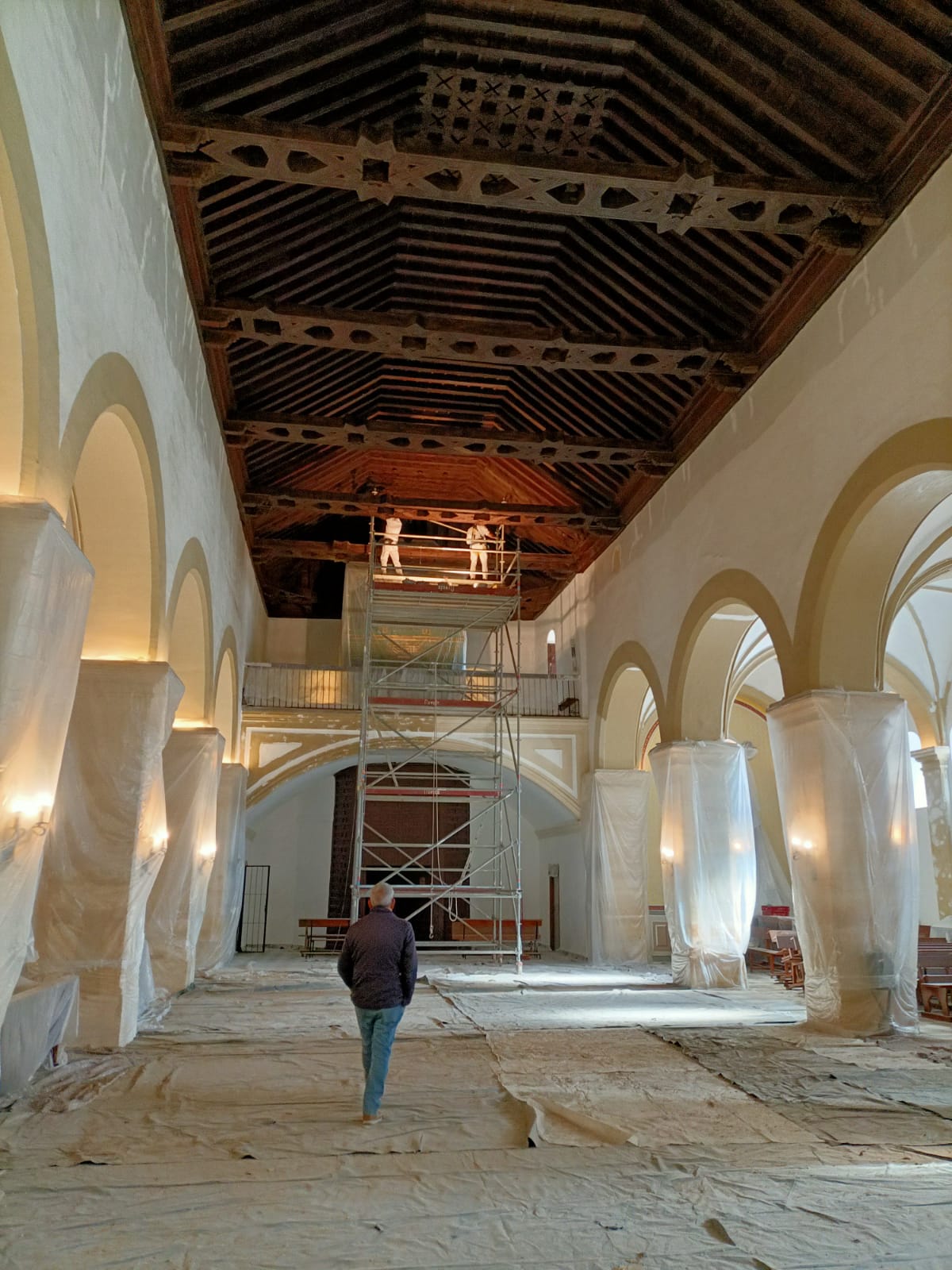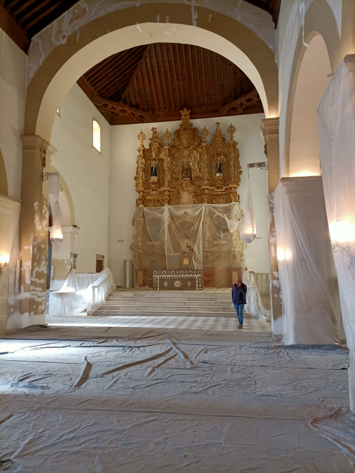Se está procediendo a la pintura íntegra del tempo que hacía 47 años que no se renovaba. Además, se está limpiando el artesanado tanto del altar mayor como de la nave central, se han picado las paredes y se les ha dado un revestimiento anti humedad. También se ha colocado un rodapié y se va a llevar a cabo un cambio y mejora de la iluminación. Aprovechando la intervención se está limpiando el artesanado, tanto del altar mayor como de la nave central y se están limpiando toda la imaginería que acumulaba bastante polvo.