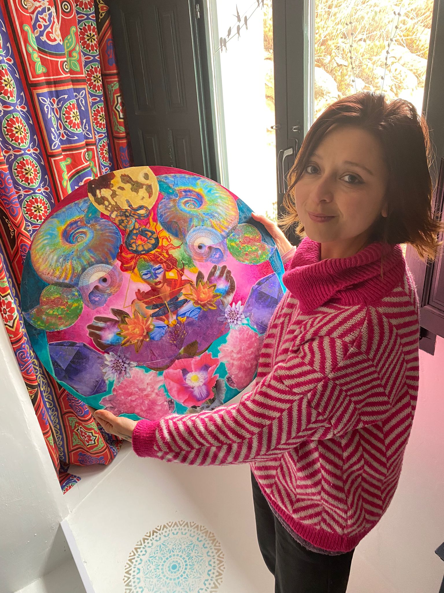 Giovaninna es una artista multidisciplinar holandesa, que diseña joyas y realiza pinturas y mosaicos utilizando diferentes técnicas. Ha viajado alrededor del mundo donde la cultura de países como o Nepal o Tibet le han servido como fuente de inspiración. Ha residido durante 29 años en Nueva Zelanda “en mitad de la nada, como en el paisaje de un cuadro” hasta que un buen día se levantó y pensó que quería buscar un lugar que conectase con su propósito, a través de internet y gracias a sus experiencias previas en España encontró el lugar, ese sitio le estaba esperando en el Valle de Lecrín, “quería buscar un lugar aislado, pero que estuviese en contacto con la cultura, un lugar real habitado por gente real y auténtica y así fue como descubrí Saleres un pueblo con gente acogedora y hospitalaria, una comunidad real”.