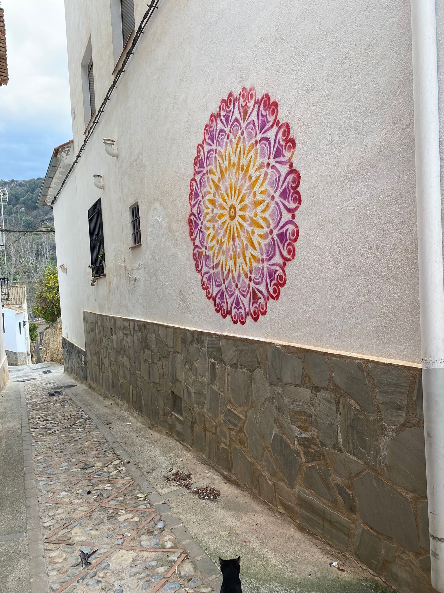 Mariana Muñoz y Giovaninna Cantale son dos artistas plásticas que le están aportando luz, color y alma a Saleres a través de sus coloridas y llamativas mandalas. Ambas residen en su nueva casa, la “Casa las Mandalas” de Saleres y son las responsables de haber decorado numerosos rincones del pueblo con estos llamativos elementos,