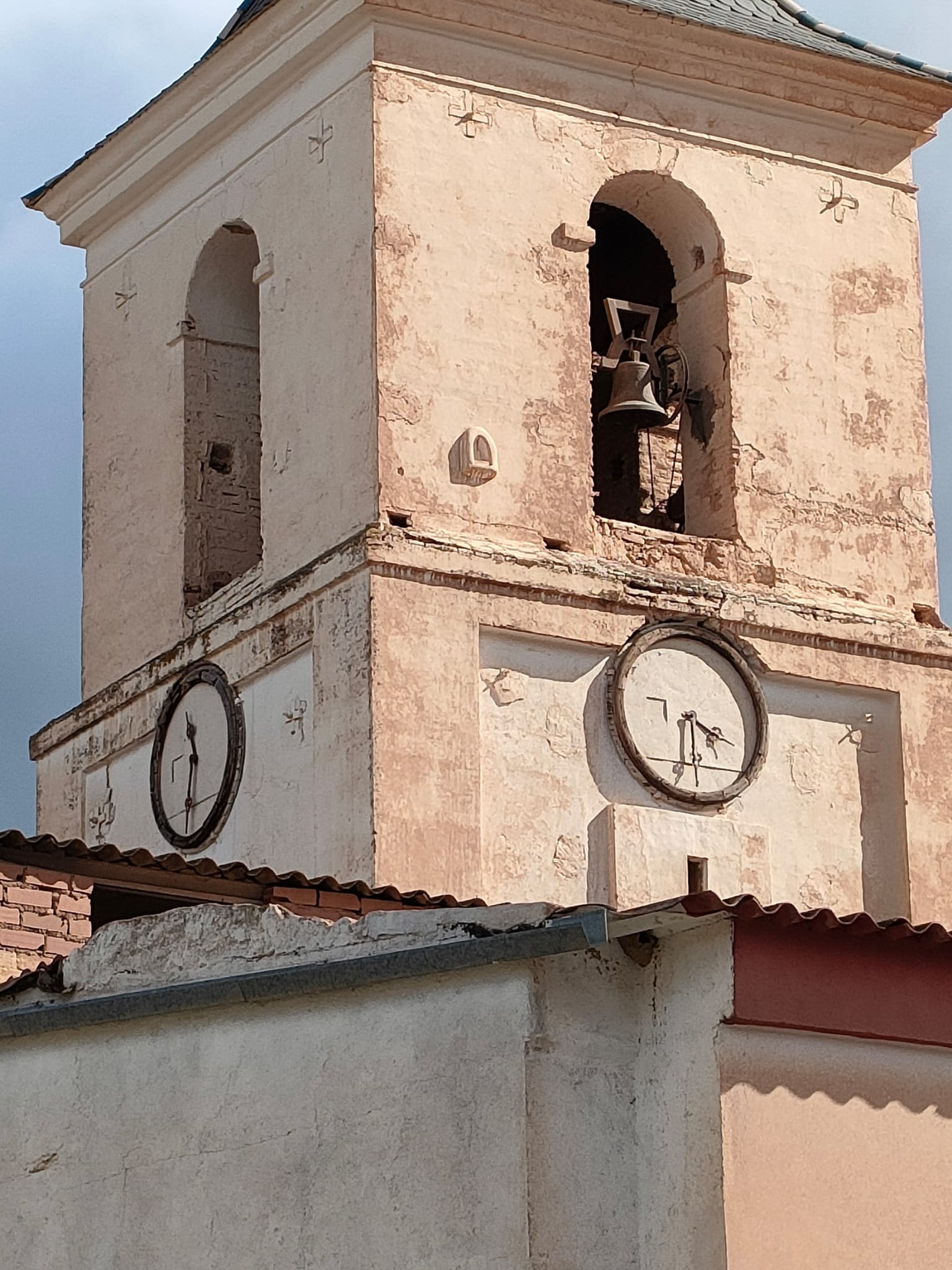 Para la persona que no alcanzase a ver la hora, cada reloj se acompañaría de una excelente campana de intenso tañer, a fin de ser oída en todo el pueblo y la vega. Siendo la sirena de antaño, marcando la jornada de principio a fin, así como esas pausas tan esperadas por los jornaleros, que les permitían enderezar la raspa, liar el cigarro e intentar saciar su hambre con el contenido de la hortera o fiambrera, que casi siempre era la “fritailla” sobrante de la cena anterior.
