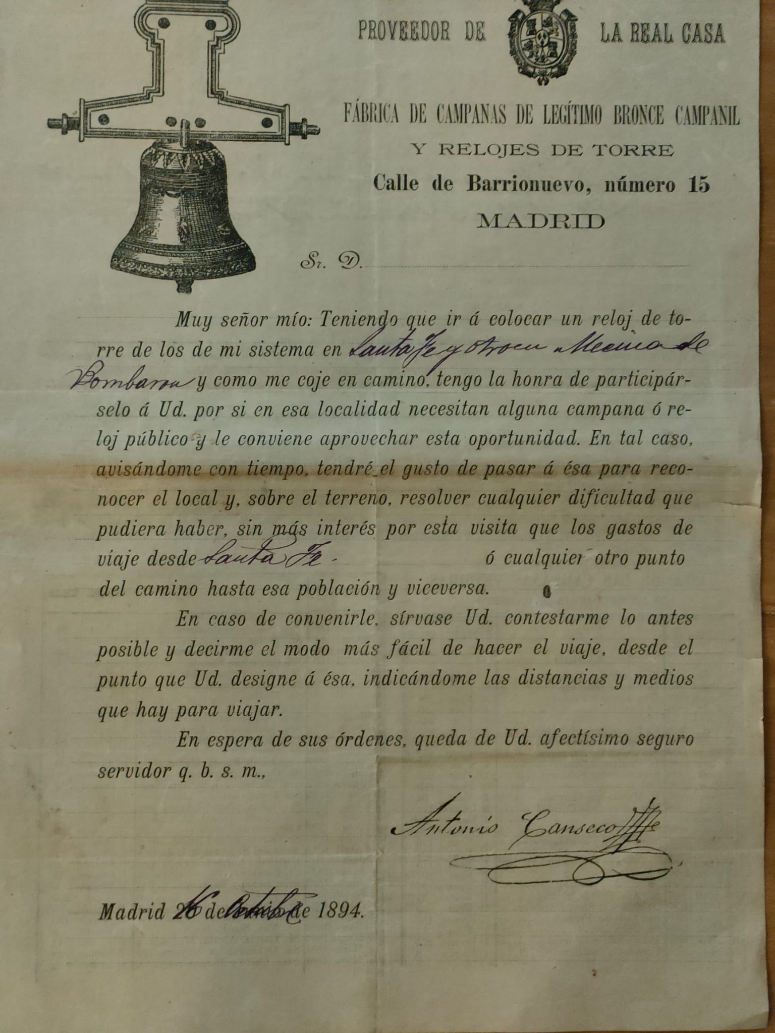 Era finales del siglo XIX y principios del XX, cuando autoridades civiles y eclesiásticas se vieron en la necesidad de incorporarse a los tiempos modernos. Abriéndose a recibir ofertas de fabricantes de relojes de torre, con campanas de legítimo bronce, para instalar en nuestros pueblos. Eran maquinarias de precisión, dotadas de una gran esfera que dominaba la cara principal de la torre, para poder ser vista desde puntos bastante distantes. En ocasiones, para que dicho dominio fuese más amplio, se colocaba más de una esfera, ocupando las distintas caras de la torre.
