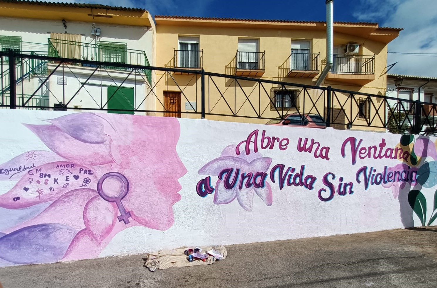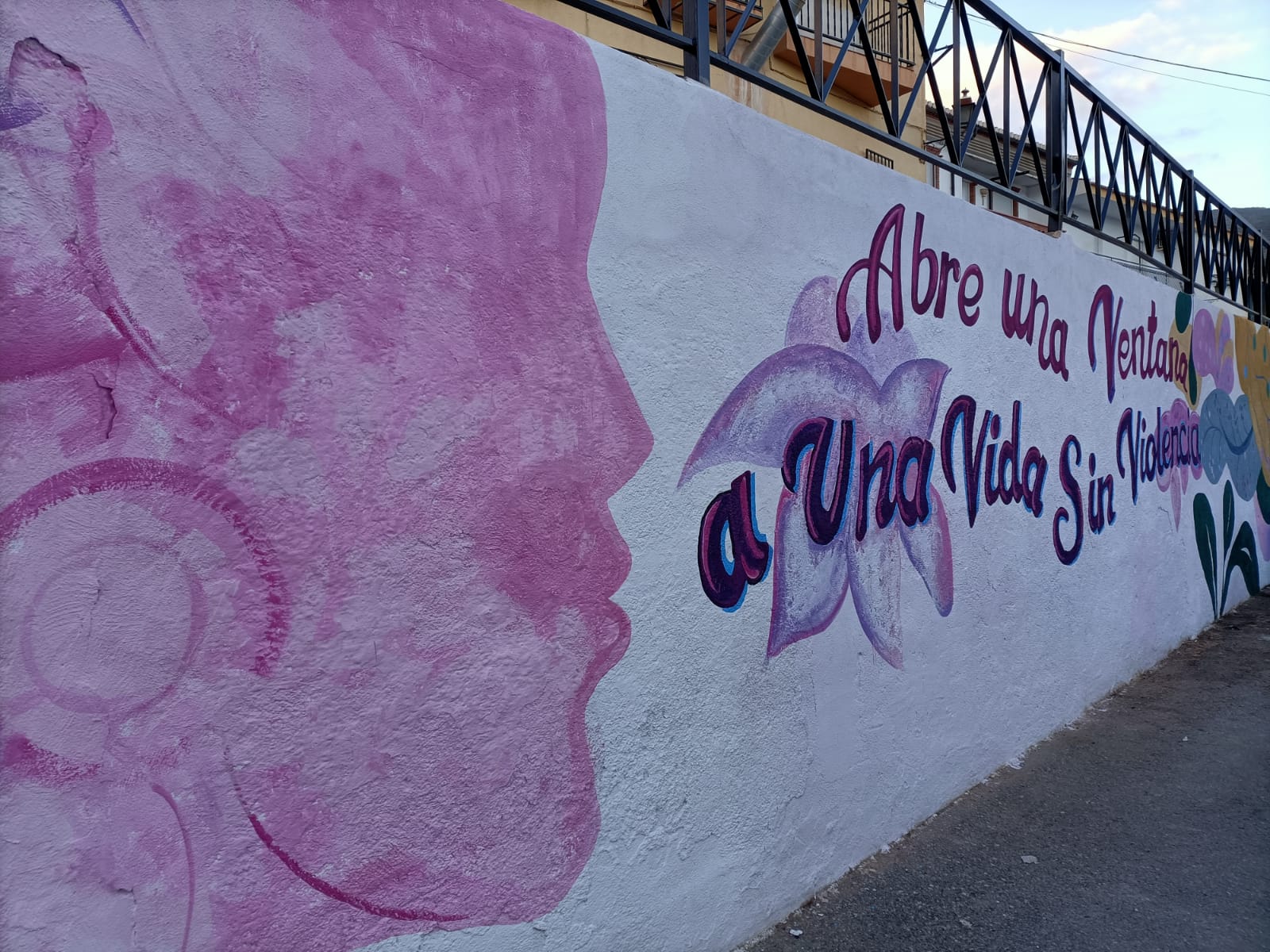 El primero de los murales se inauguró el pasado 8 de marzo con motivo del Día de la Mujer Trabajadora. Se trató de la intervención realizada en el mobiliario urbanos y las paredes donde puede leerse: “Abre una ventana a una vida libre de violencia”.