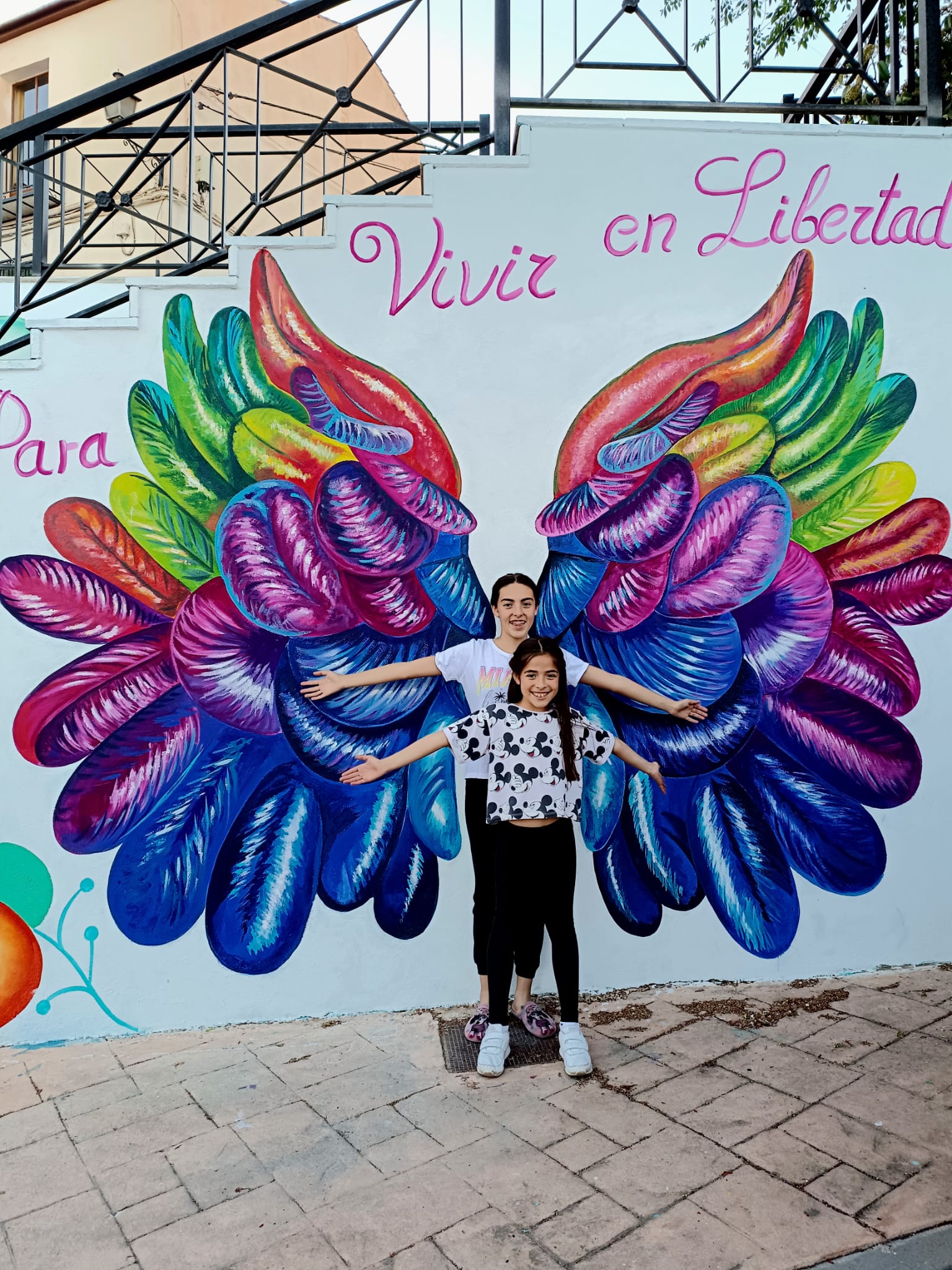 La segunda de las composiciones, a favor de los derechos de las personas LGTBIQ+, está ubicada en la calle Nieves y en ella se puede leer el mensaje: “Ponte alas para vivir en libertad”. Con este mural se pretende sensibilizar e incentivar el respeto a la diversidad sexual y la igualdad efectiva de todas las personas, con independencia de su orientación sexual e identidad de género, sobre todo de cara a promover estos valores de respeto entre la juventud.