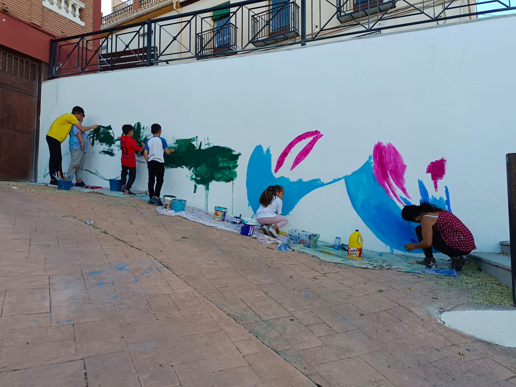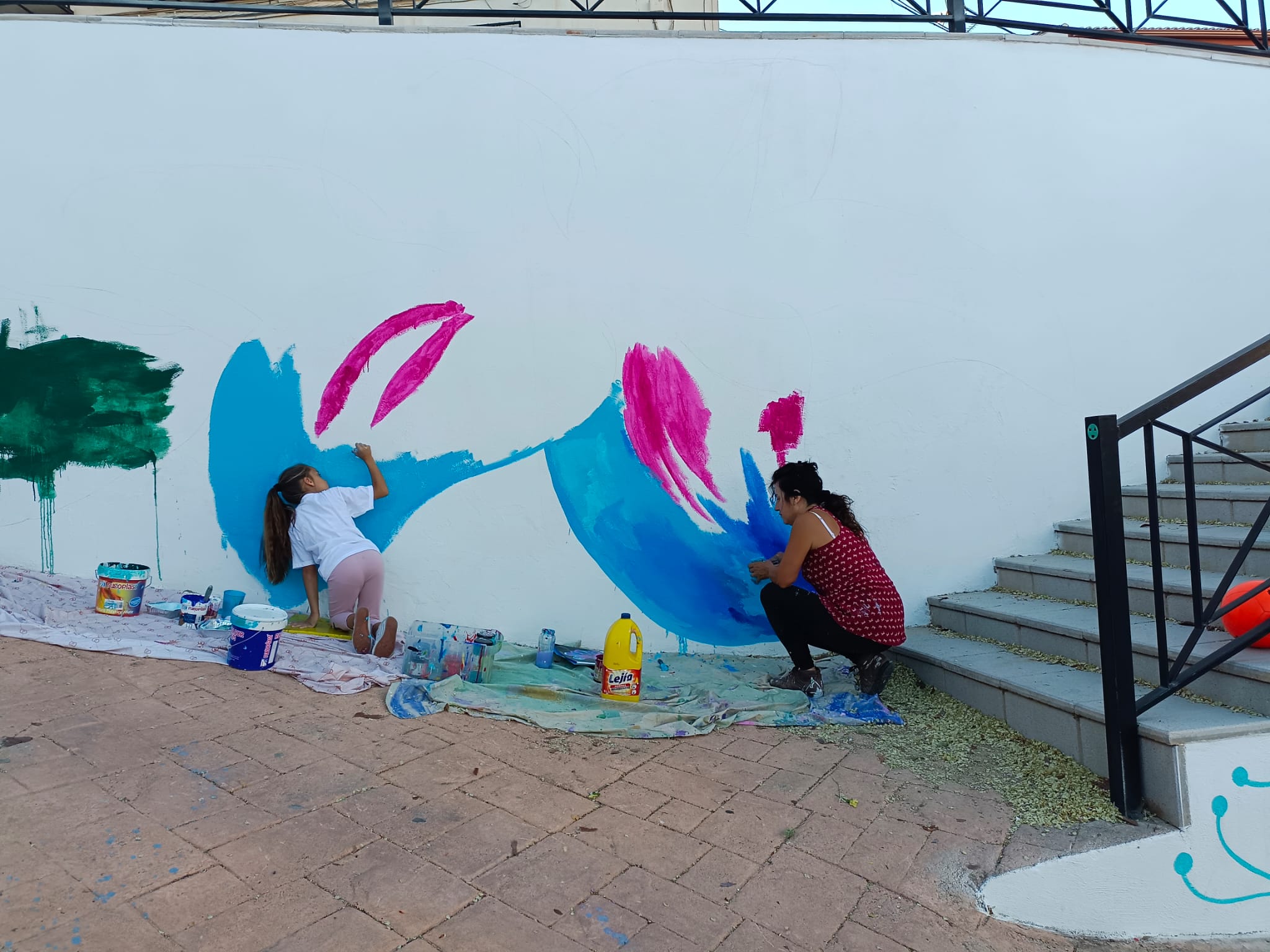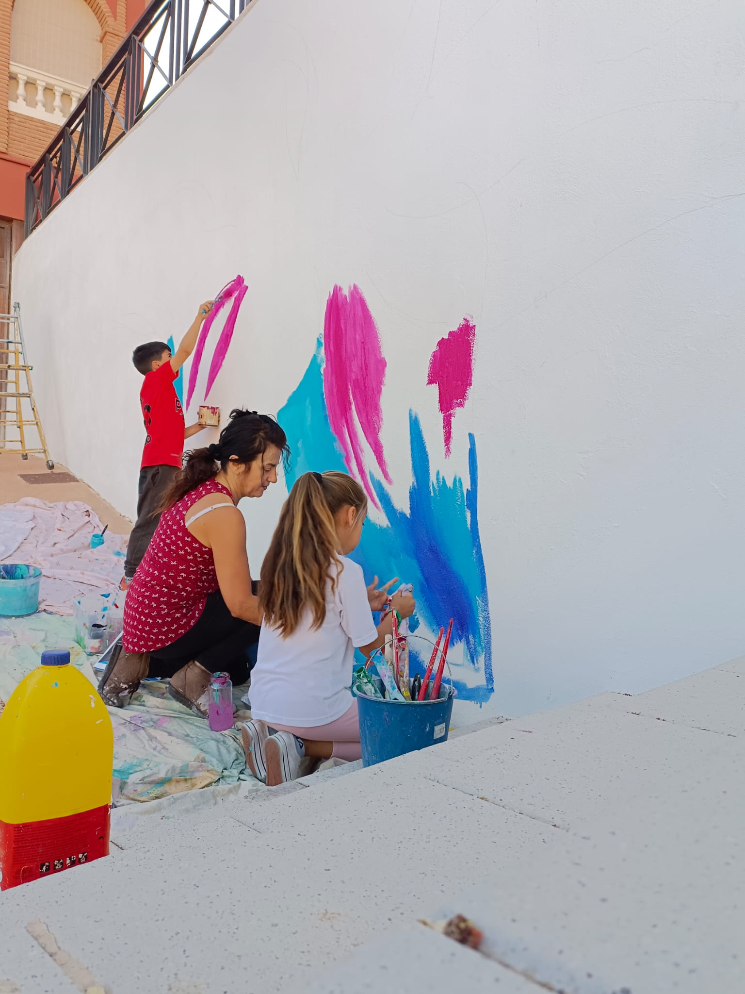 En la elaboración de los murales, Inma ha contado con la colaboración de los niños y niñas de los barrios donde han sido pintados, “quería contar con los niños y niñas de cada zona donde están los murales, los he animado para que los hagan suyos y los amen como una bonita propuesta para su pueblo embelleciéndolo y reivindicando valores”, explica la artista.