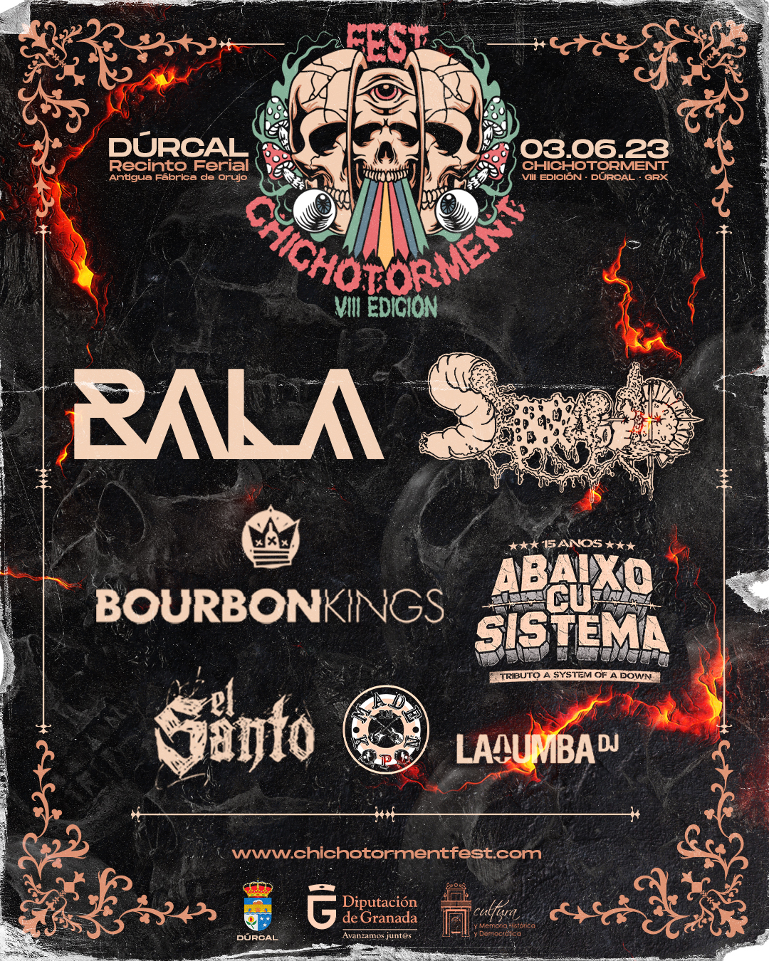 ChichoTorment Fest es un festival de música rock que se viene celebrando desde el año 2013, aunque tuvo un par de años de parón a causa del COVID y que ofrece la posibilidad al público de disfrutar de bandas que nunca han tenido la oportunidad de actuar en la zona, “las bandas del Chichotorment fest 2023 son espectaculares, pero también lo es Dúrcal y el Valle de Lecrín donde se desarrolla el festival. No solo es música, sino que la experiencia que puedes vivir trasciende a más sentidos gracias a su espléndida naturaleza a las faldas de Sierra Nevada, la espectacular gastronomía, las confortables y entretenidas actividades disponibles como con el recién instalado punto de Bungee Jumping, escalada o trekking, los acogedores alojamientos y la amabilidad de la gente”.