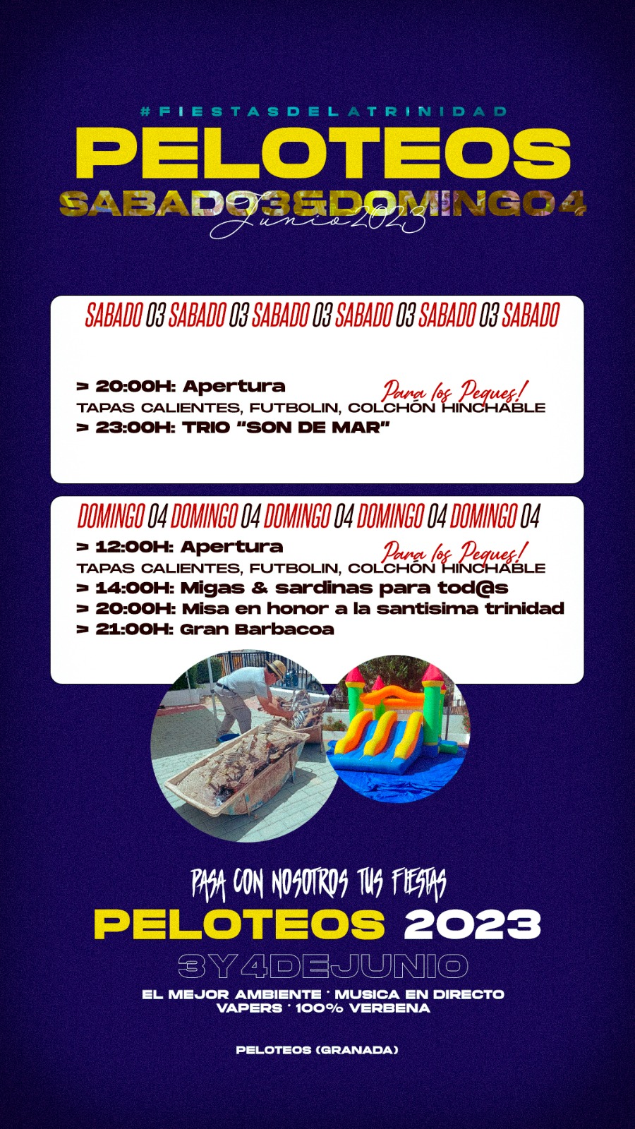 Corría el año 1988 cuando los vecinos y vecinas del Barrio Bajo de Béznar, que tuvieron que mudarse al Barrio de los Peloteos debido a la construcción del embalse de Béznar, decidieron comenzar a celebrar las fiestas en honor a la Santísima Trinidad.