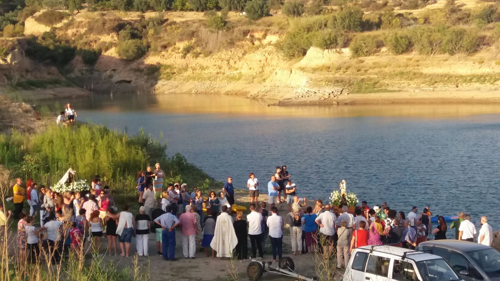 El pasado sábado 15 de julio centenares de personas se dieron cita en las inmediaciones del pantano de Béznar para acompañar a las dos” Vírgenes del Carmen” de Béznar en su romería, su misa y paseo en barca por el pantano.