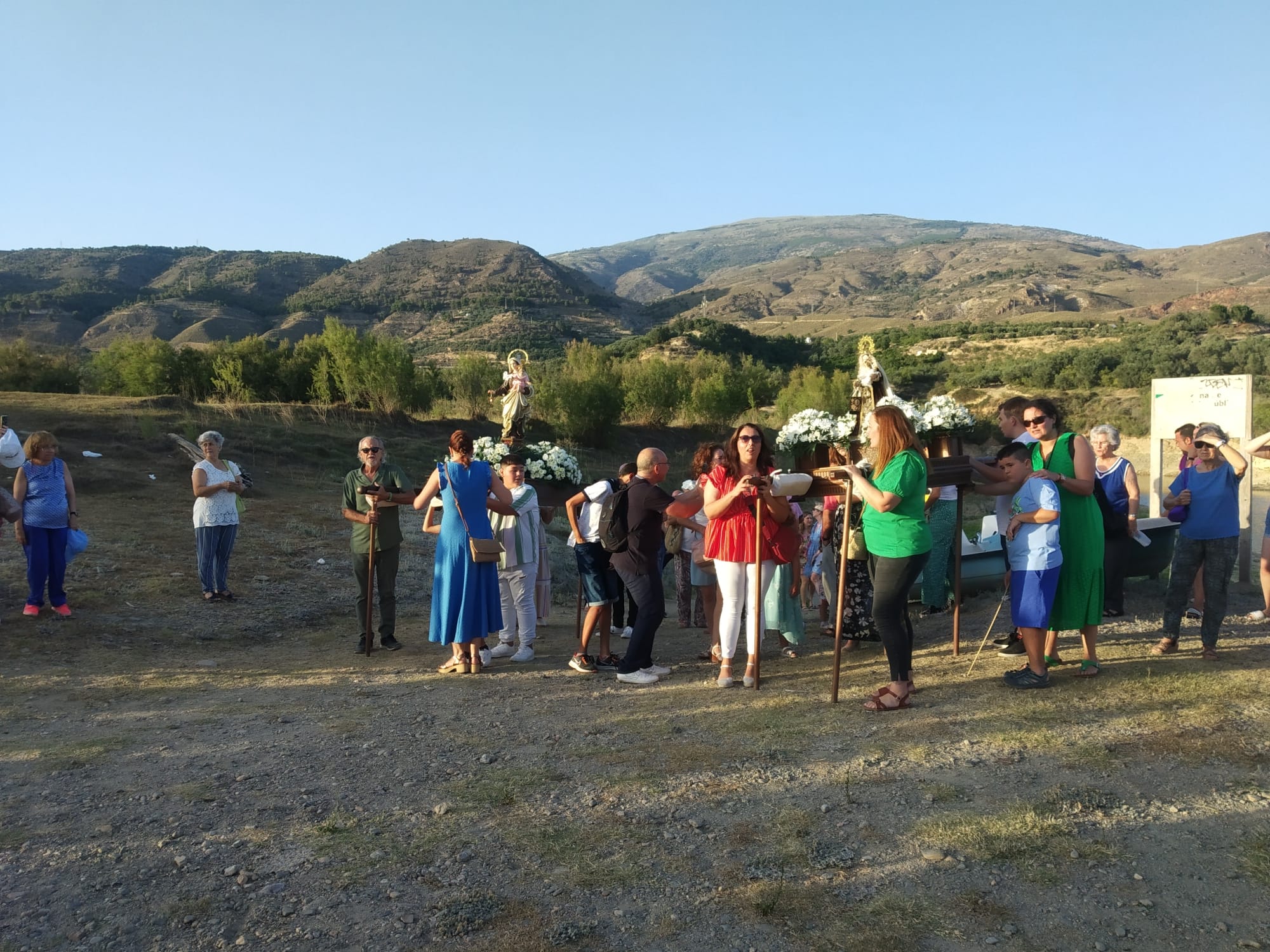 Y es que en la localidad veneran a dos imágenes de la virgen, una de ellas la que bajó en romería desde la iglesia de Béznar hasta el pantano, y otra la que la esperaba en la orilla que se embarcó y procesionó navegando.