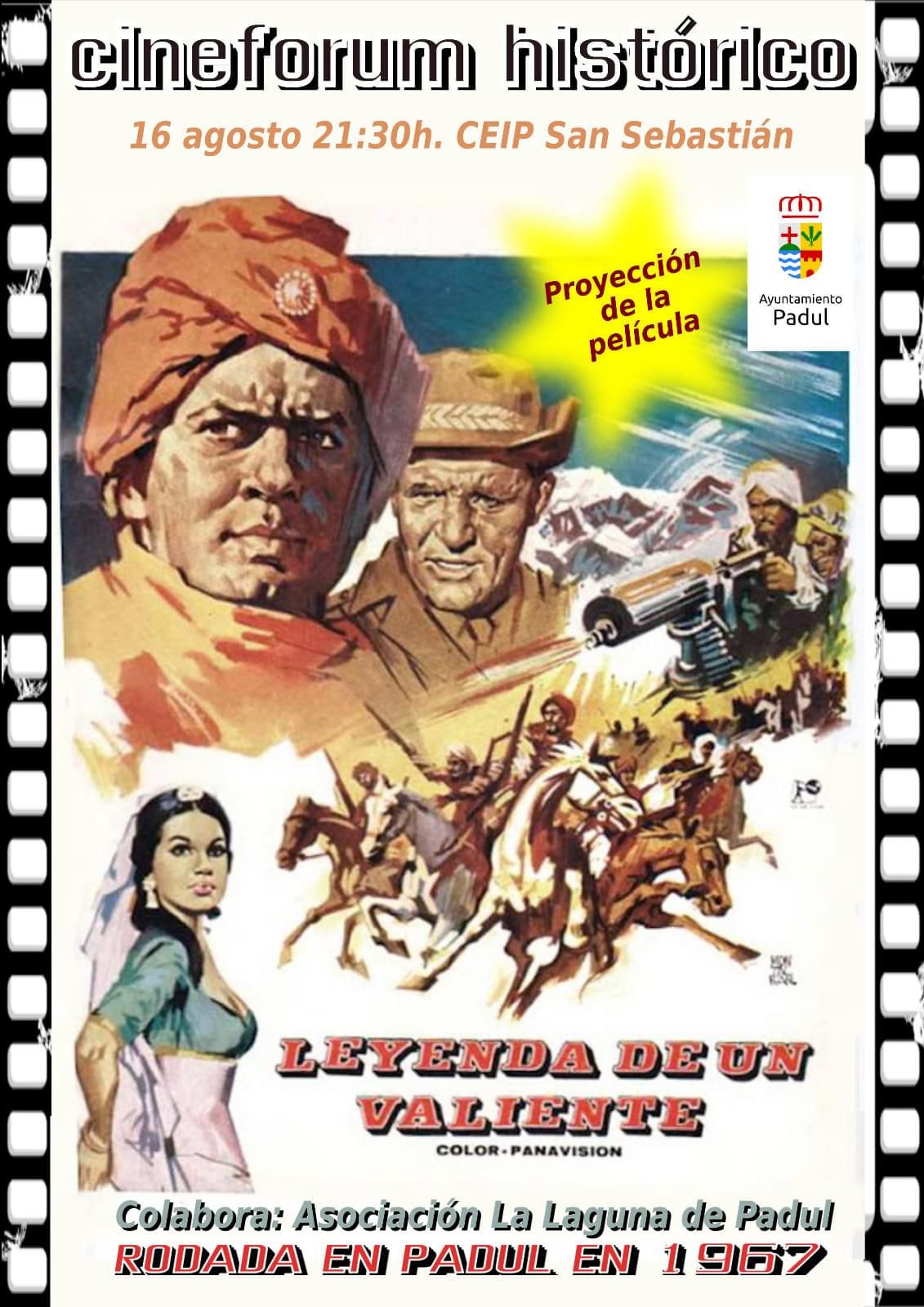 El próximo día 16 de agosto a las 21:30h en el CEIP San Sebastián podremos disfrutar de la película «La Leyenda de un Valiente», que fue rodada en El Padul en el año 1967 en diferentes escenarios como los alrededores de la Casa Grande, donde fue reconstruida una diosa india en una de sus torres y se instaló un mercado, en la ramblilla, cueva de la arena y en el Cahíz el Llano, donde construyeron un Fuerte.