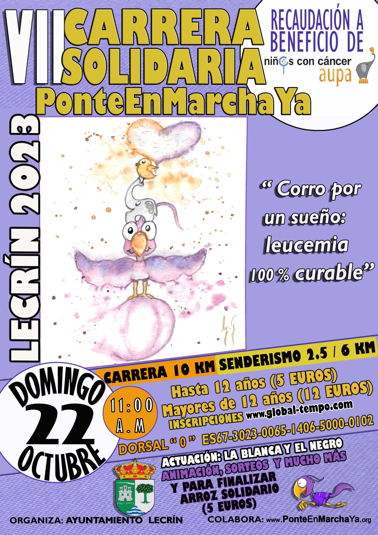 El sueño de conseguir que la leucemia sea curable al 100% volverá a ser el objetivo de la VII Carrera “Ponte en marcha ya” que se va a celebrar el próximo 22 de octubre en Lecrín a partir de las a las 11:00 horas.
