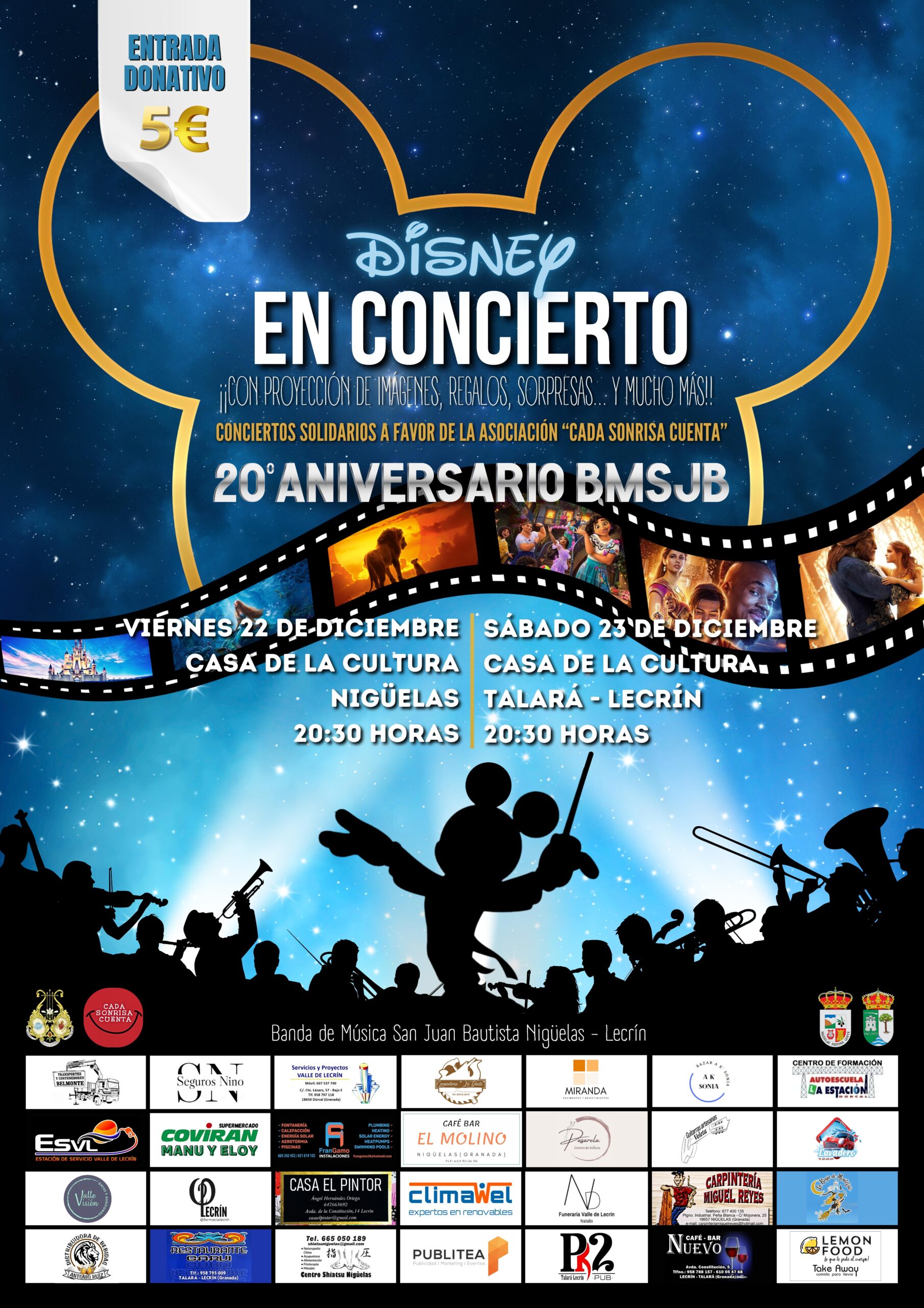 Los casi sesenta músicos y músicas que componen la formación llevan ensayando desde el pasado mes de septiembre el Gran Concierto de Navidad cuyo repertorio se va a centrar en los grandes clásicos de Disney. Las bandas sonoras van a ir acompañadas de imágenes y extractos de diálogos de algunas de las películas más conocidas de la factoría cinematográfica de animación.