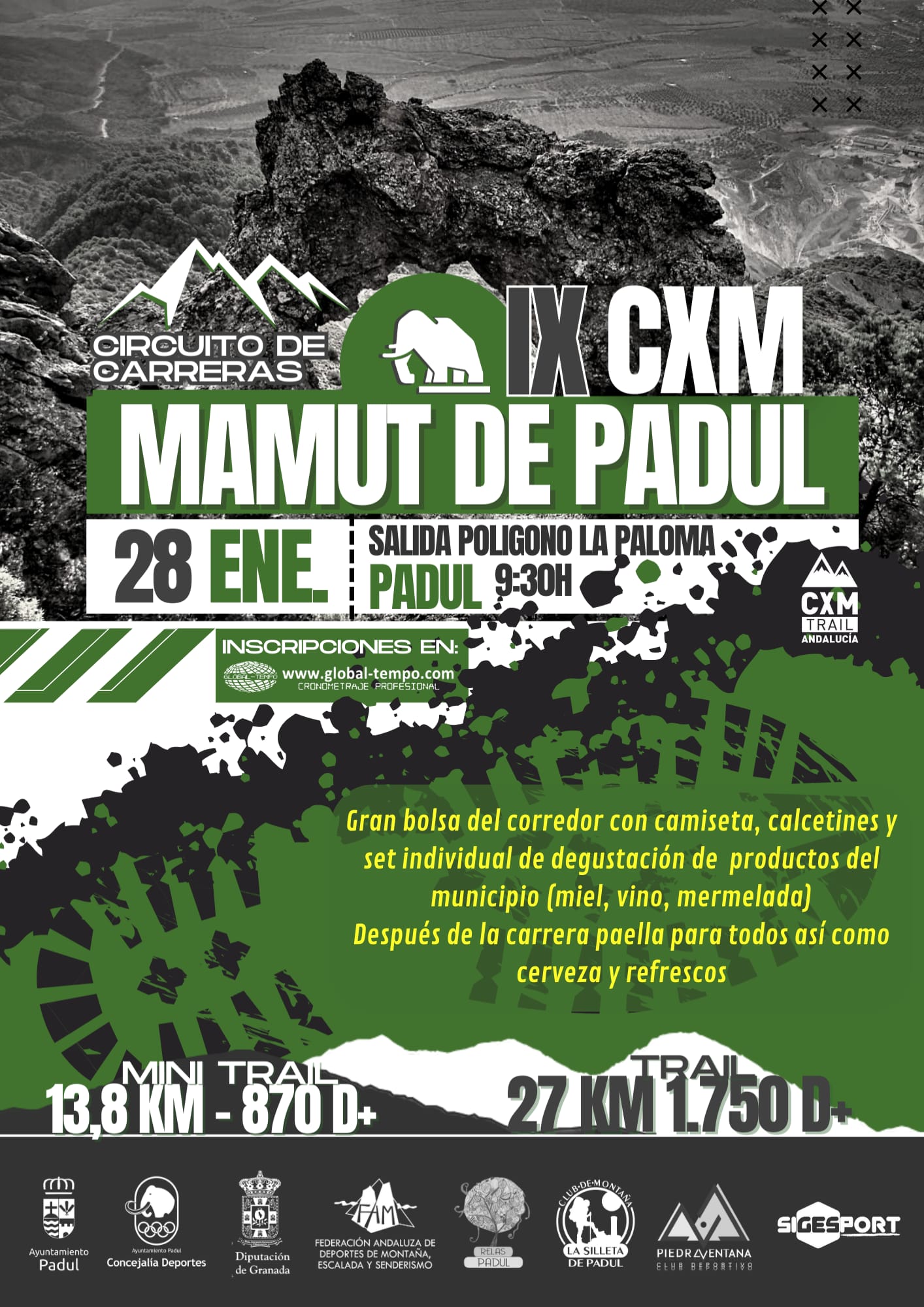El circuito anual de carreras, organizado por la concejalía de deportes del Ayuntamiento de Padul, dará comienzo el próximo domingo 28 de enero con la celebración de la novena edición de la Carrera por Montaña “Mamut Padul”