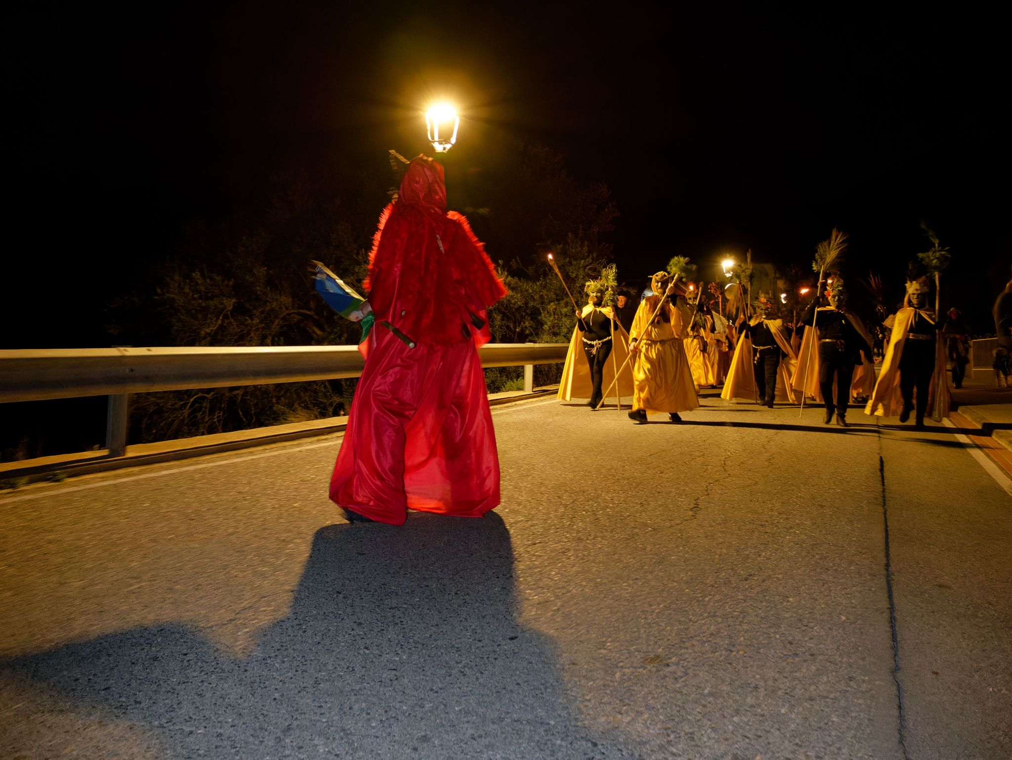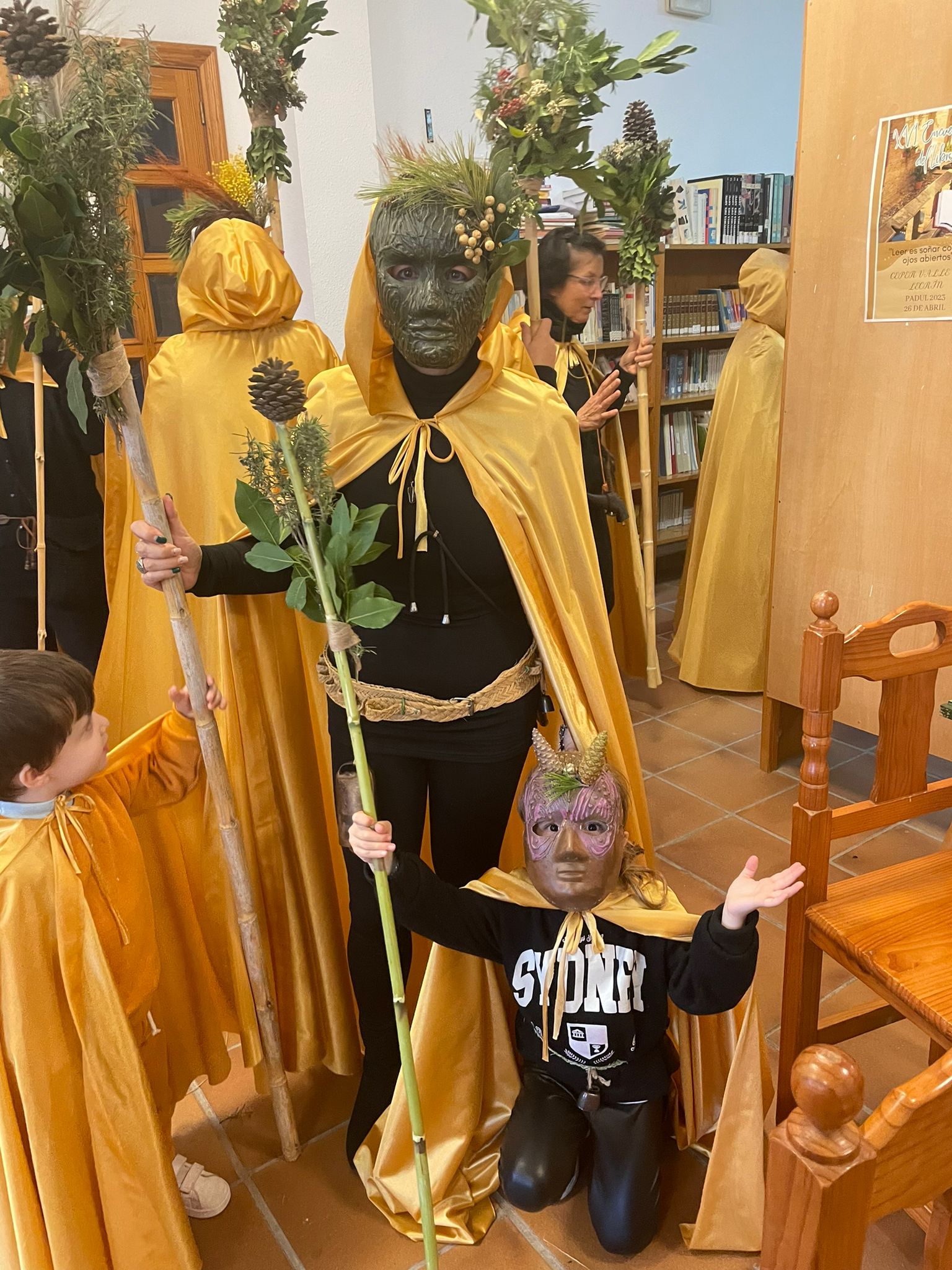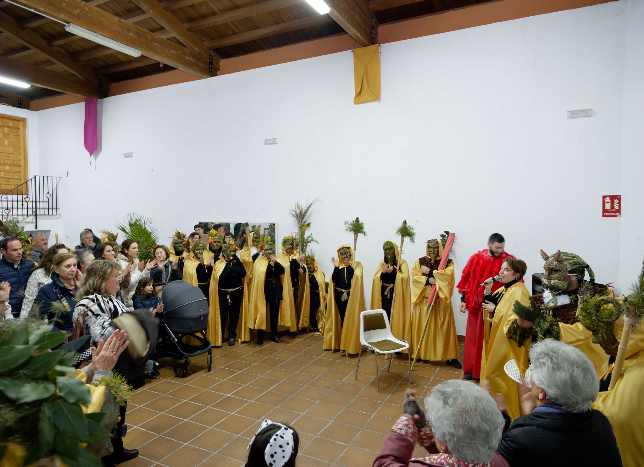 Una vez más, continuando con la dinámica de trabajo desempeñada durante la organización del Mercado y encendido de Navidad, se han llevado a cabo una serie de talleres en los que los participantes se han confeccionado los disfraces formados por una capa mostaza y una máscara decorada con elementos de la naturaleza y con una estética propia, original y diferente. Llevaban cencerros y cascabeles sonaban al caminar anunciando su llegada, así como antorchas para alumbrar el camino.