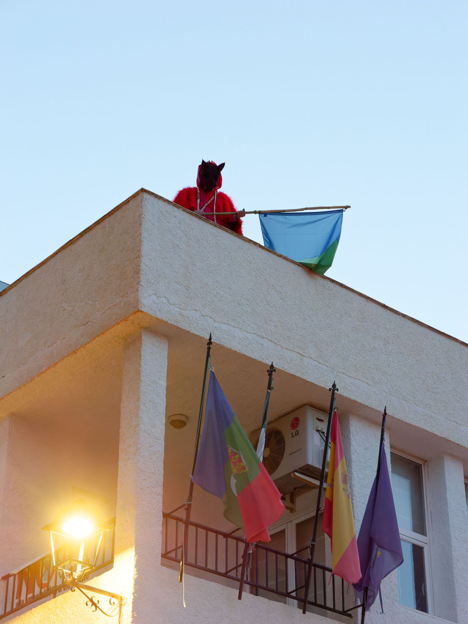 El Gailán ataviado de rojo y con una máscara de gato llevaba de la mano su característico látigo y portaba la bandera del pueblo. Fue todo un proceso lleno de momentos únicos y una fiesta plagada de nuevas vivencias que buscan sentar un precedente y repetirse en el tiempo hasta llegar a consolidarse gracias a la participación de las generaciones venideras.