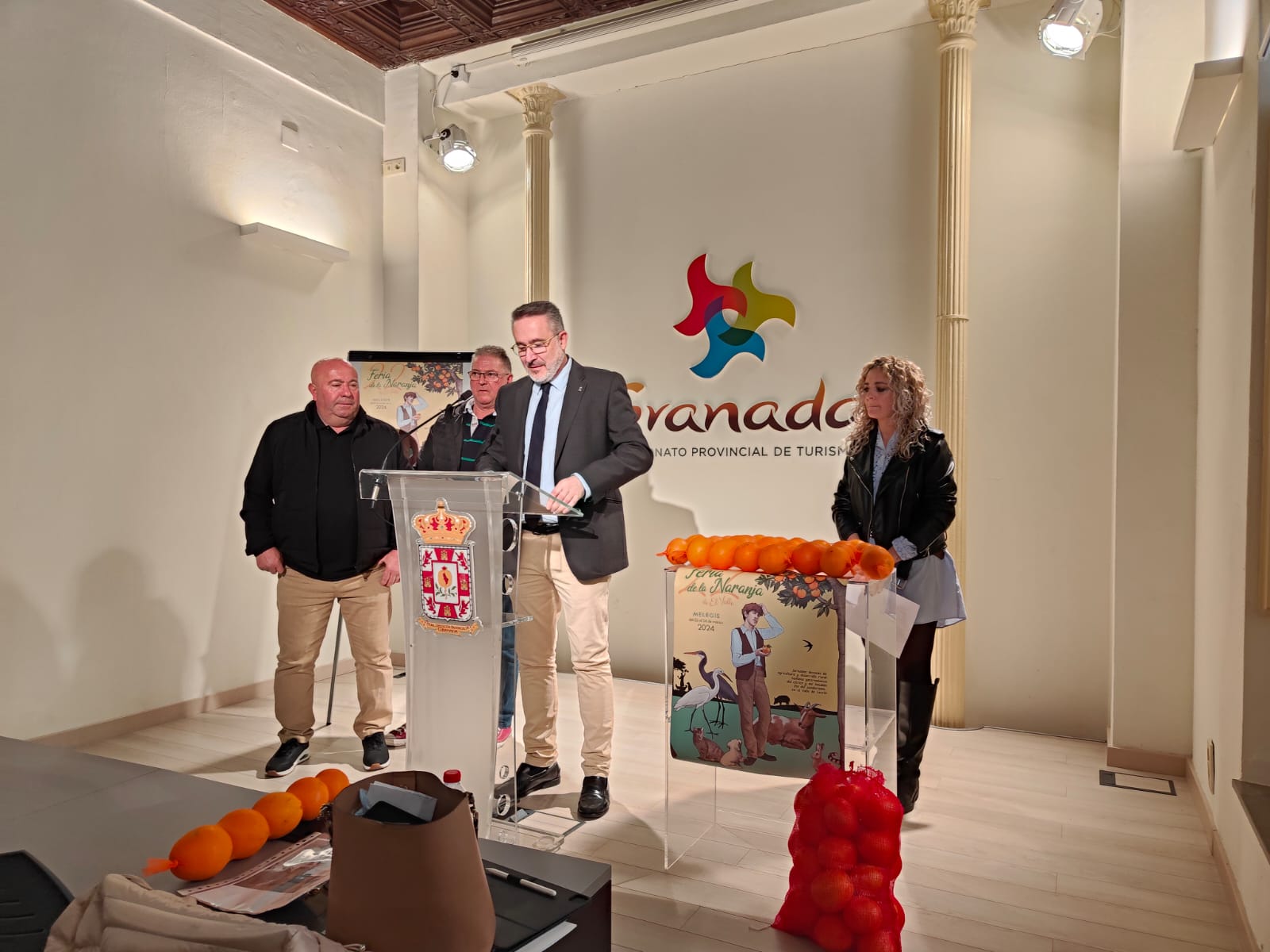 El diputado de Fondos Europeos, Desarrollo, Industria y Empleo, Antonio Díaz, ha presentado, junto al alcalde de El Valle, Antonio Ruiz, los concejales Cristina Zarco y Juan Manuel Ortega y el presidente de la Asociación de Turismo Valle de Lecrín, Isaías Padial, la edición XXII de la Feria de la Naranja que acogerá el municipio de El Valle durante una semana, del 18 al 24 de marzo, y que será un escaparate donde poder degustar la gastronomía de esta comarca de la provincia podrá degustar y conocer su rico patrimonio natural.