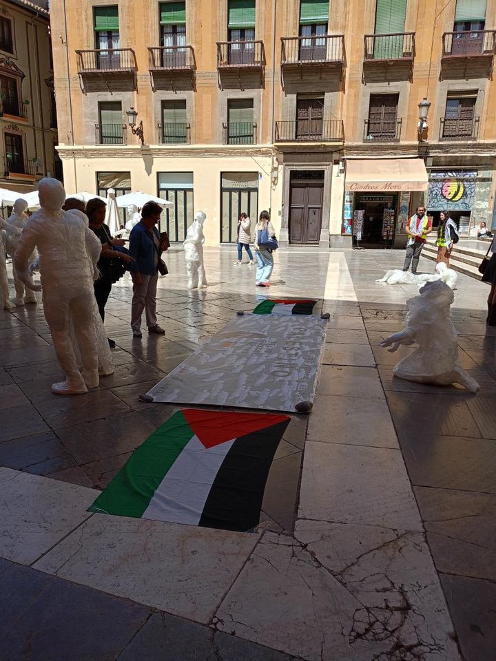 Niños y niñas de Nigüelas han servido como modelos, a estudiantes de Bellas Artes para realizar una docena de esculturas, que fueron expuestas el pasado viernes en la Plaza de Las Pasiegas de Granada para exigir el fin del terror que vive el pueblo de Gaza. Las esculturas, elaboradas con cinta adhesiva transparente y manos de escayola, transportaban al espectador a momentos de desesperación tras un bombardeo situándolo frente a situaciones actuales de las que se están viviendo en Gaza.