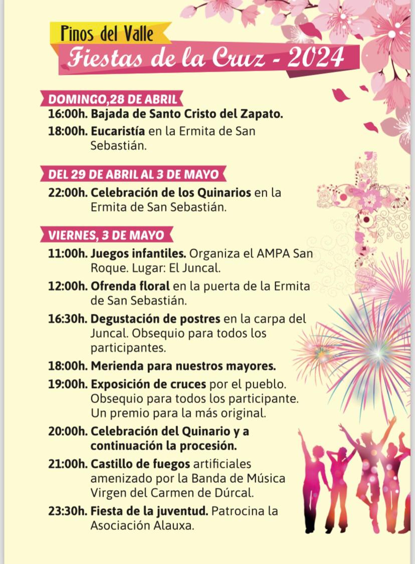La localidad de Pinos del Valle celebrará sus tradicionales fiestas populares de la Cruz en honor al Santísimo Cristo del Zapato que darán comienzo el viernes 3 de mayo y se prolongarán hasta el domingo.