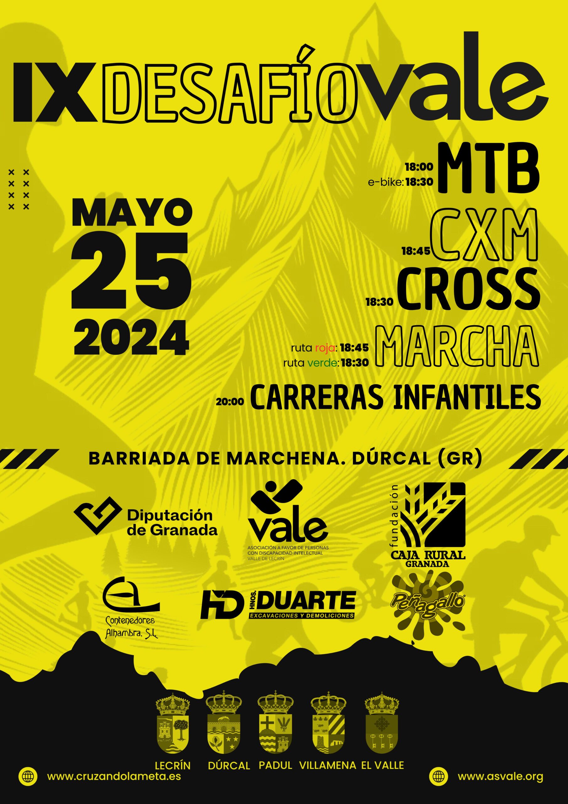 El evento deportivo que se compondrá de Carrera por Montaña, Ebike, Cross y dos marchas de senderismo con diferentes grados de dificultad y carreras infantiles. Además de la Carrera MTB, que será la segunda prueba del Circuito Provincial de BTT Media Maratón Diputación de Granada 2024. Una edición más, tras las pruebas deportivas habrá música en vivo y una gran fiesta de convivencia entre participantes, amigos, familiares junto con los usuarios y usuarias de Vale