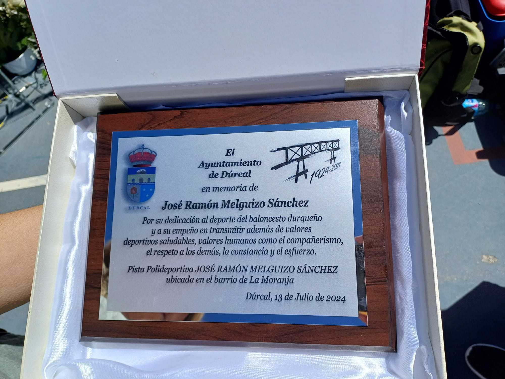 La corporación municipal del Ayuntamiento de Dúrcal acordó, de manera unánime homenajear al durqueño que año tras año se entregó de manera altruista al Club de Baloncesto de Dúrcal, inculcando la enseñanza de esta modalidad deportiva, iniciando a los niños y niñas en prácticas deportivas y buenos hábitos saludables, creando una escuela y haciendo del Club de Baloncesto Dúrcal un referente en la provincia de Granada en diferentes categorías y competiciones. En un sencillo y emotivo acto, en el que estuvieron presentes sus compañeros, familiares, amigos junto a los niños y niñas a los que transmitió su pasión por este deporte, se descubrió una placa que recordará siempre su figura ligada al baloncesto.