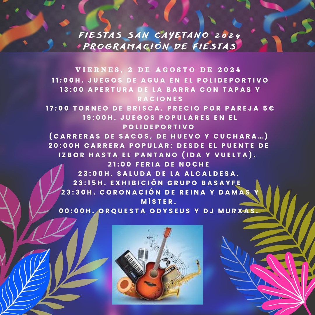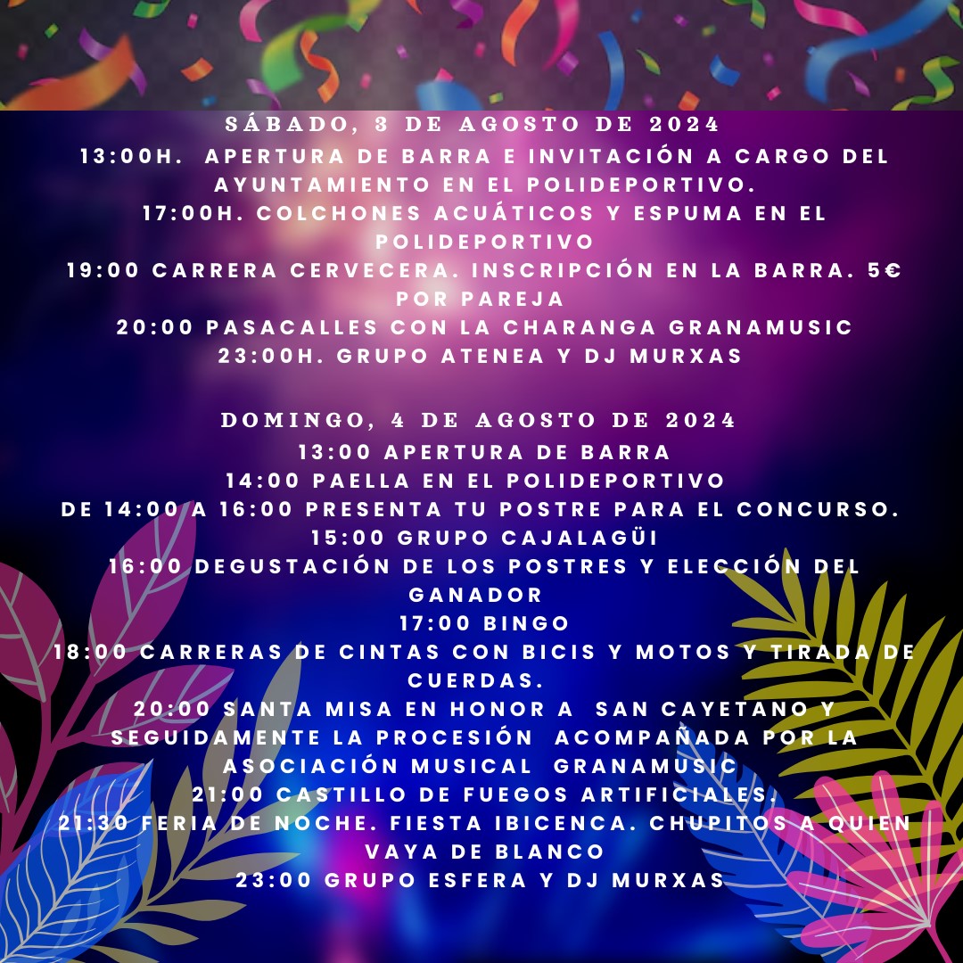20:00 Santa misa en honor a San Cayetano y seguidamente la procesión acompañado por la asociación musical Granamusic