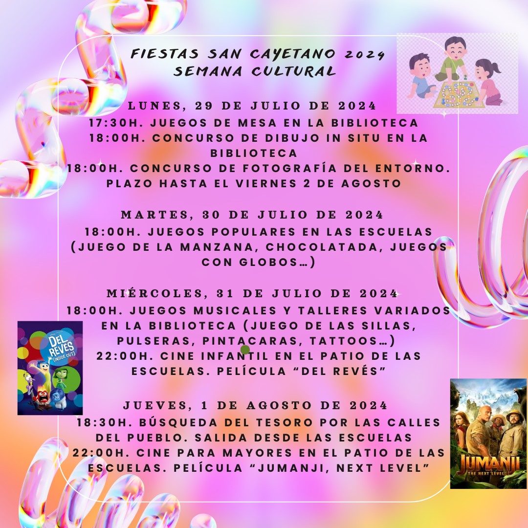Tras las actividades programadas dentro de la Semana cultural, que se desarrollan desde ayer en la localidad, el viernes 2 de agosto darán comienzo las jornadas festivas que se van a alargar hasta el domingo 4 de agosto.