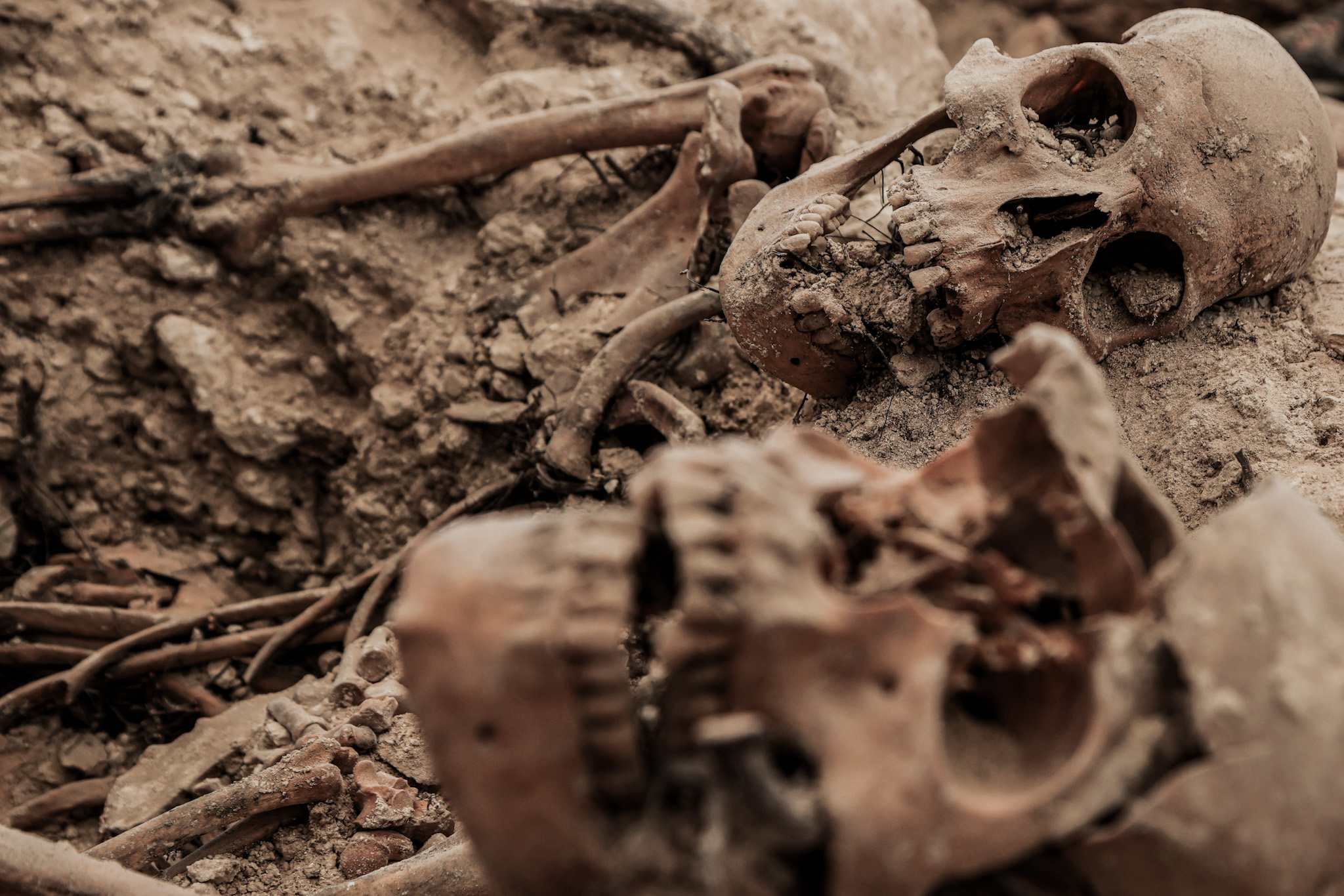 fosas y el apisonamiento bajo una piedra de gran tamaño de uno de los cuerpos, que podría haber sido arrojada en momentos posteriores a la colocación del represaliado en la fosa tras su homicidio.
