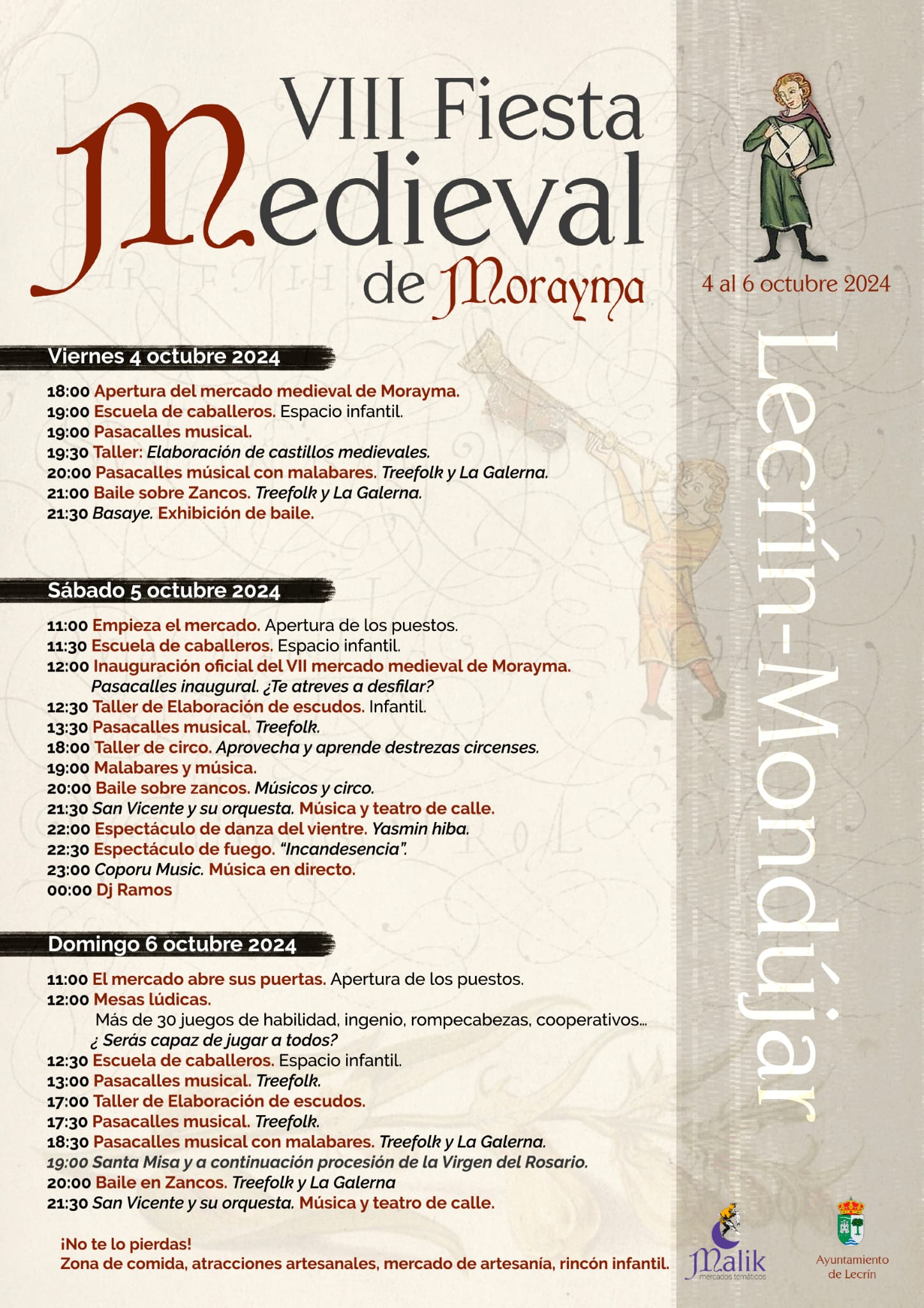 La última reina de Granada como esposa de Boabdil, Morayma le dará nombre un año más a la fiesta que anuncia la entrada del otoño en Mondújar. Del 4 al 6 de octubre el entorno de la iglesia de la localidad va a volver a albergar la octava Fiesta Medieval de Morayma que contará con puestos y stand donde los protagonistas serán la artesanía, la gastronomía, la música y los espectáculos ambientados en el medioevo.