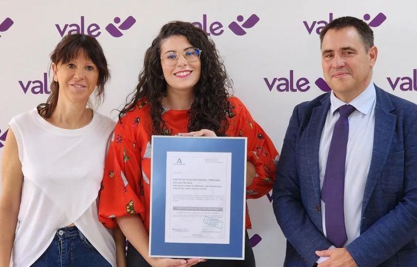 La Asociación Vale ha recibido la renovación de su certificación de calidad de la Agencia de Calidad Sanitaria de Andalucía (ACSA) para el servicio de atención temprana que ofrece a niños y niñas y a sus familias, así como para sus servicios residenciales y de día para adultos. La certificación de la Agencia de Calidad Sanitaria de Andalucía reconoce la calidad de los servicios que esta entidad ofrece a menores y a sus familias, a mayores y a personas con discapacidad.
