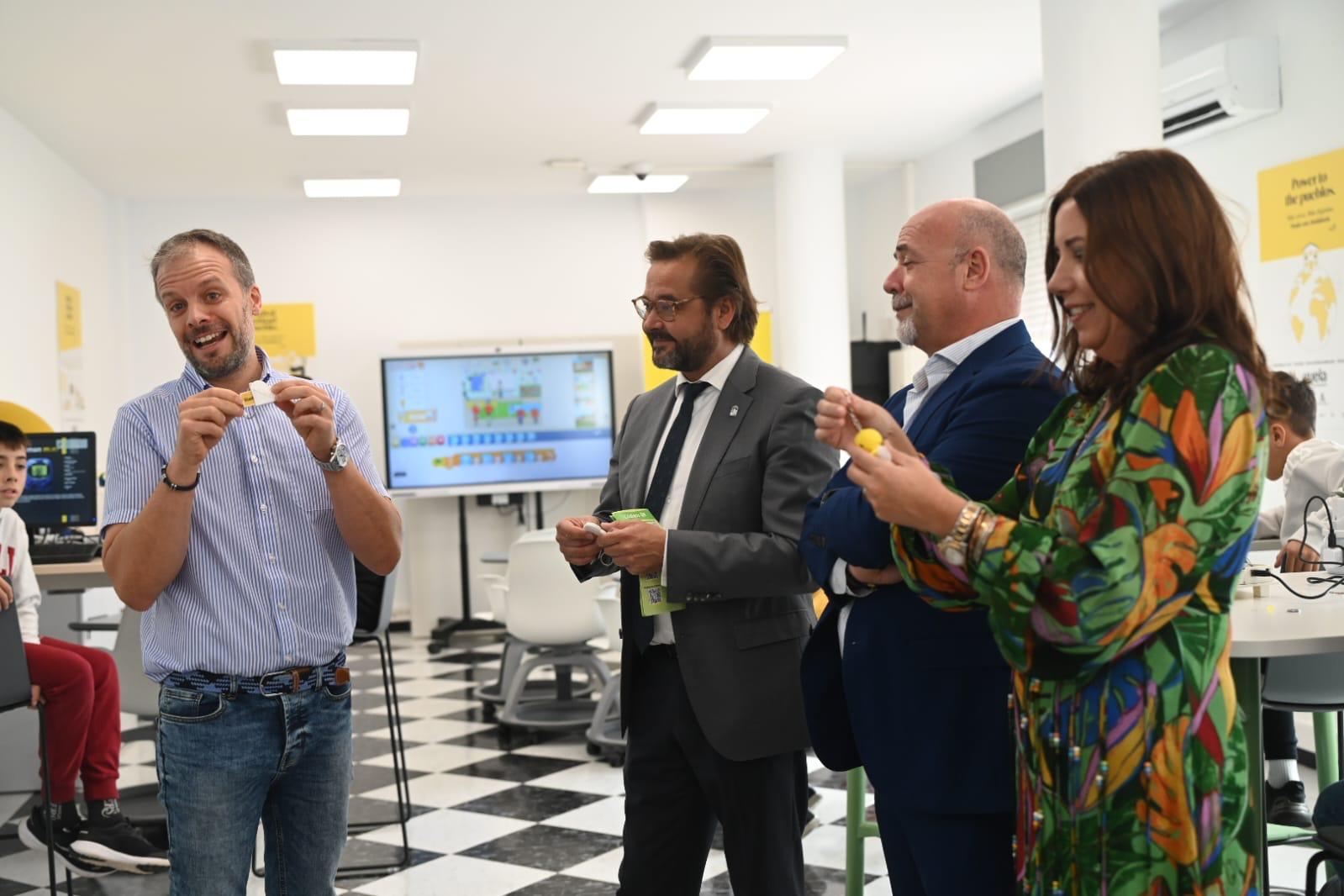 Durante la visita, pudieron comprobar cómo usuarios de diferentes edades y perfiles realizaban actividades de aprendizaje digital, como el grupo de alumnos y alumnas de 1º de ESO del Colegio El Azahar de Lecrín, que desarrollaban una serie de actividades de aprendizaje digital, concretamente la denominada “Integración Didáctica de los Kits de Robótica”, donde eran los propios jóvenes quienes presentaron estas integraciones didácticas, como juegos con Makey Makey, juegos con Micro:bit, adaptaciones con kit Raspberry, configuraciones y opciones con las cámaras Xiaomi y AverMedia.