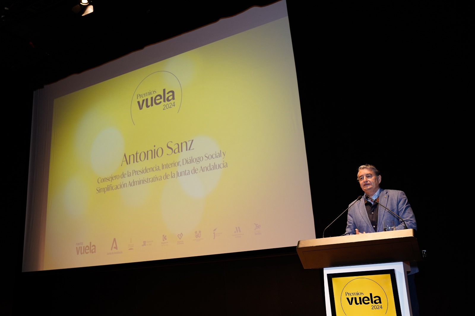 El consejero de la Presidencia, Interior, Diálogo Social y Simplificación Administrativa, Antonio Sanz, ha hecho entrega de los primeros Premios Puntos Vuela en el Palacio de Congresos de Granada enmarcado en el II Congreso de Inteligencia Artificial de Andalucía, destacando que “son una muestra del talento, la dedicación y la visión de futuro que caracterizan a todos aquellos que forman parte de esta gran familia digital” y que demuestran el éxito de personas e instituciones que han sabido aprovechar todo el potencial de la red de Puntos Vuela.