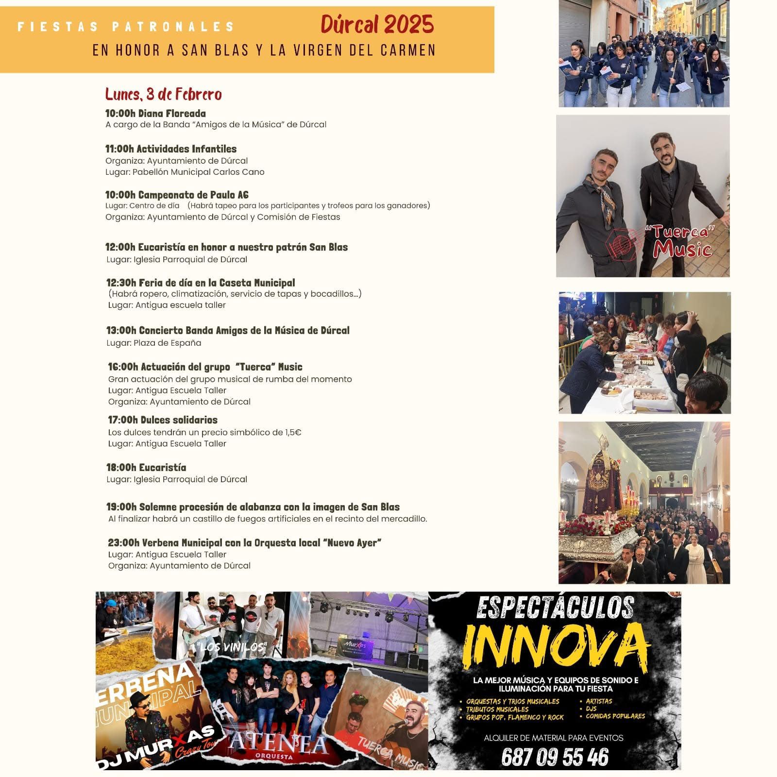 Dúrcal celebra sus fiestas patronales en honor a San Blas el próximo fin de semana
