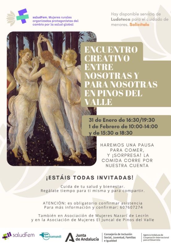 En enero de 2025 se han consolidado los tres grupos de mujeres con los que se van a llevar a cabo varios talleres también durante el mes de febrero. En Dúrcal y Nigüelas están trabajando la salud hormonal y van a utilizar como recurso la danza, la expresión corporal y el trabajo con las emociones. En Padul y Cozvíjar se están centrando en la salud vinculada con el territorio y, a través de la herramienta artística fotográfica, van a unir pasado y presente en unas fotografías collage. En Lecrín y Pinos del Valle se va a poner el acento en la salud asociativa y la unidad como medio de expresión creativa para trabajar necesidades y propuestas, donde utilizarán el teatro como herramienta creativa activista.