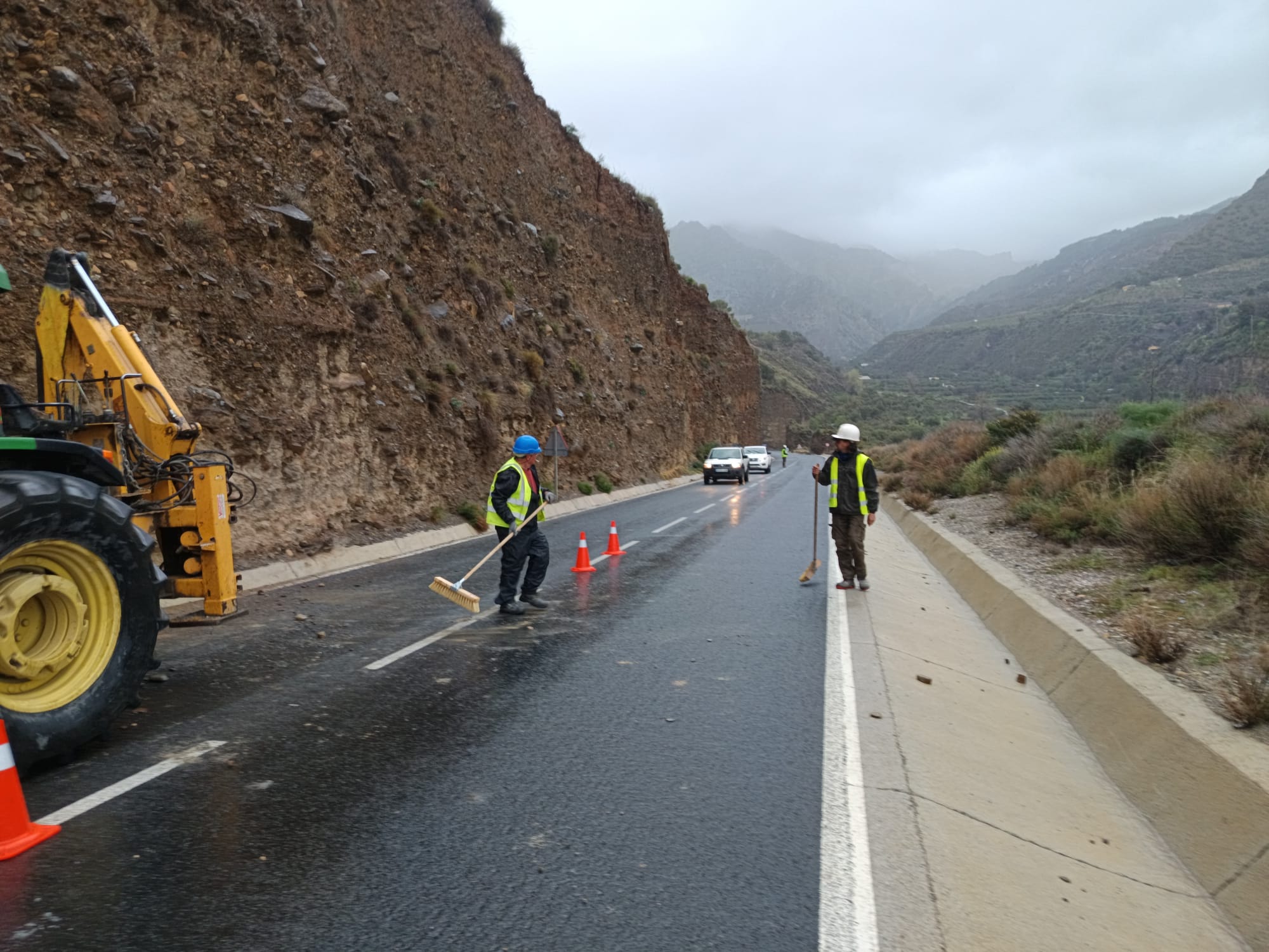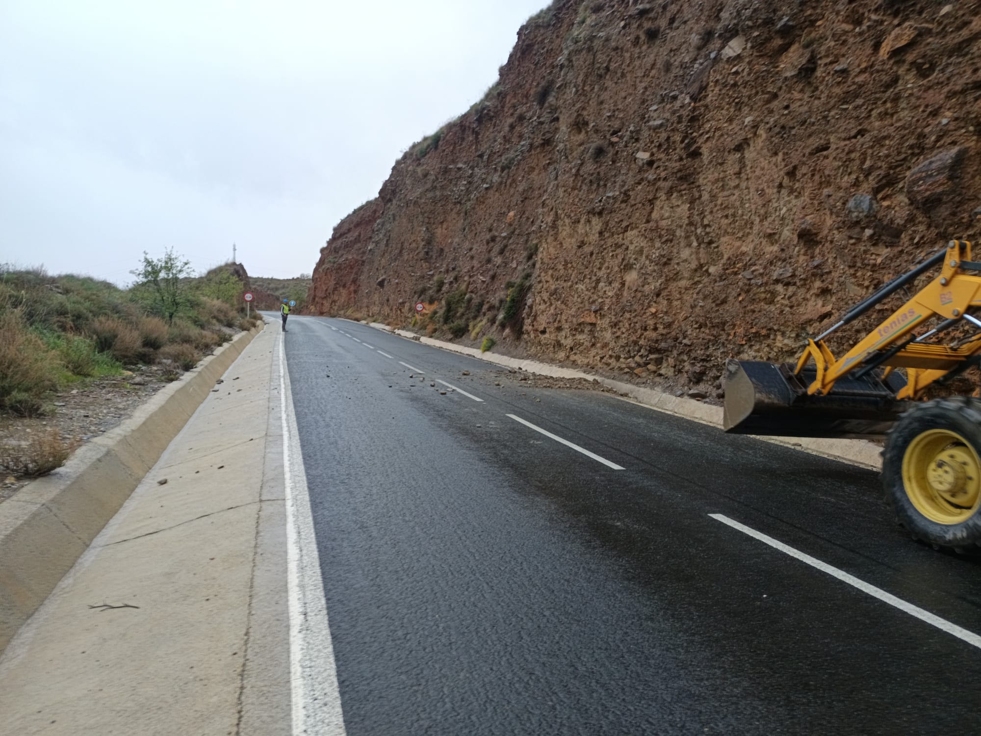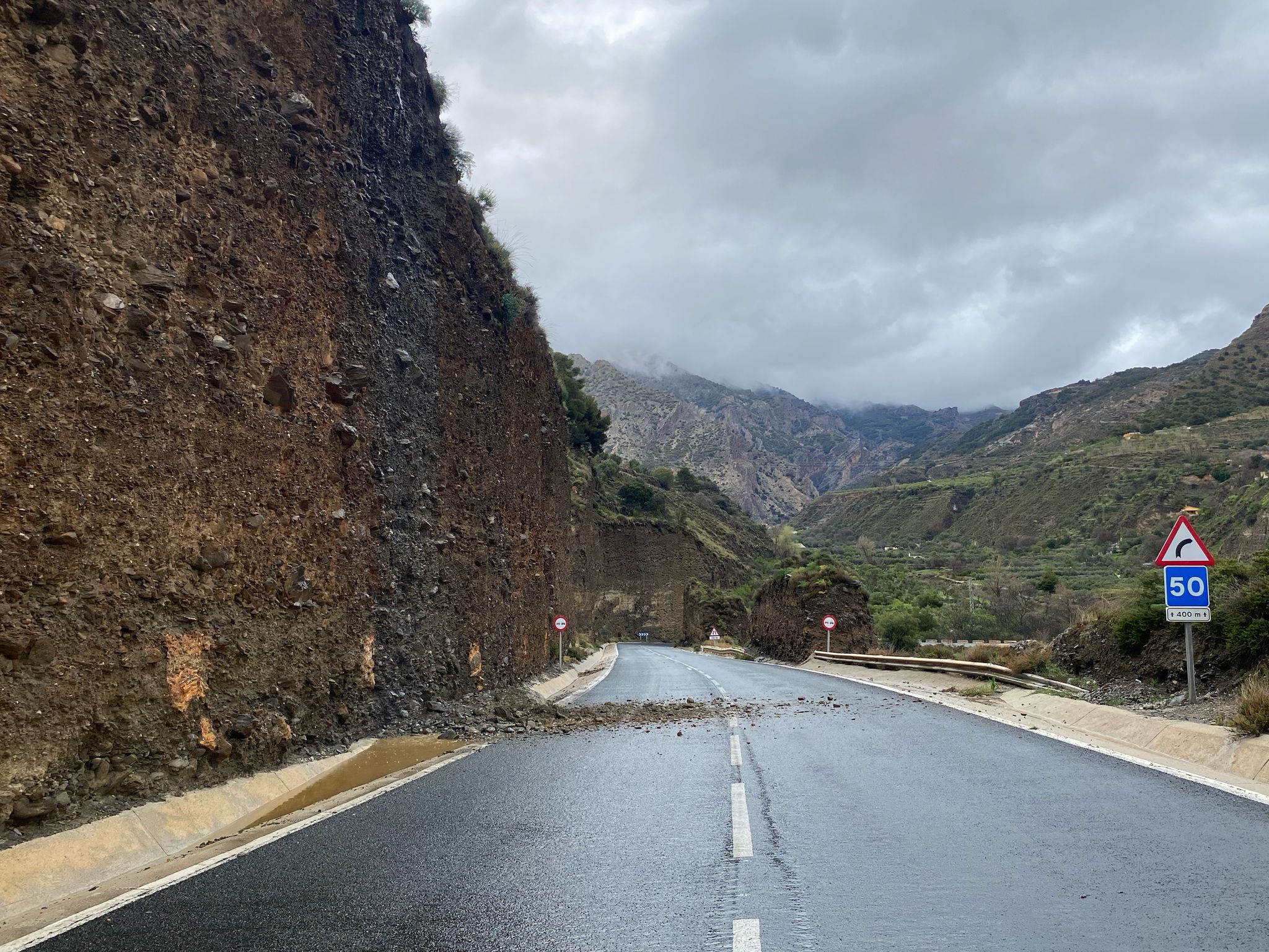 La lluvia provoca desprendimientos en un tramo de la carretera N-323 entre Talará y Nigüelas
