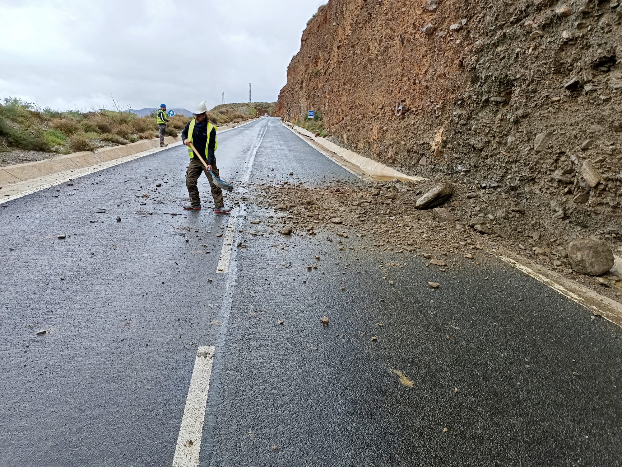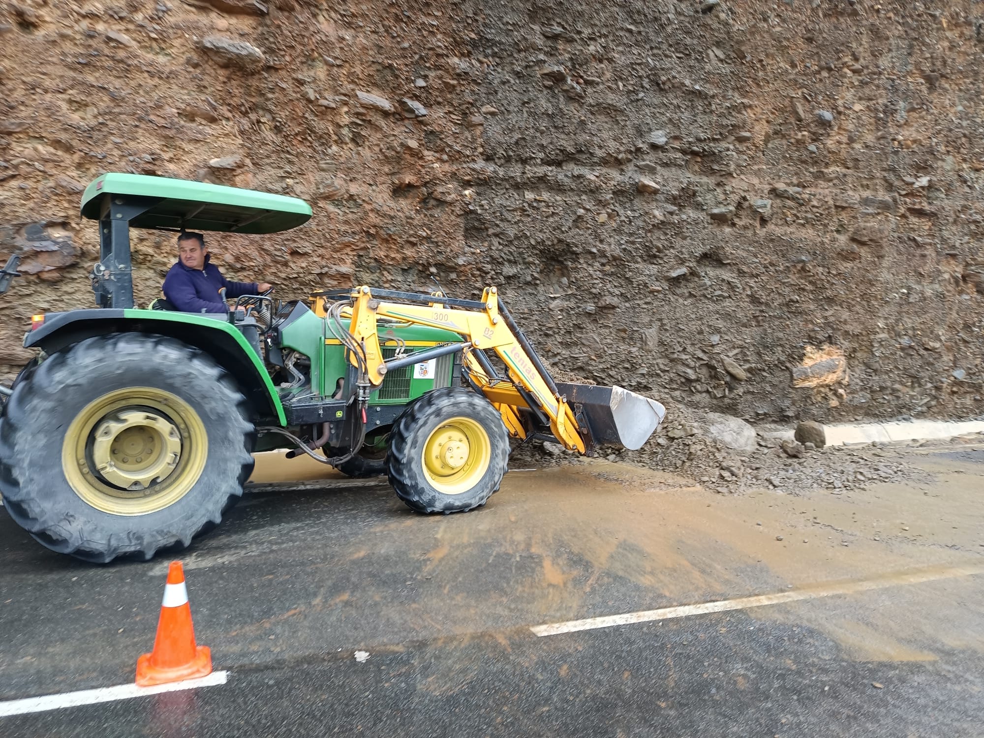 El desprendimiento de rocas a causa de la lluvia había dejado intransitable parte de la vía obligando a los vehículos que transitaban por ella a tener que esquivar los obstáculos provocando un importante riesgo para la circulación.