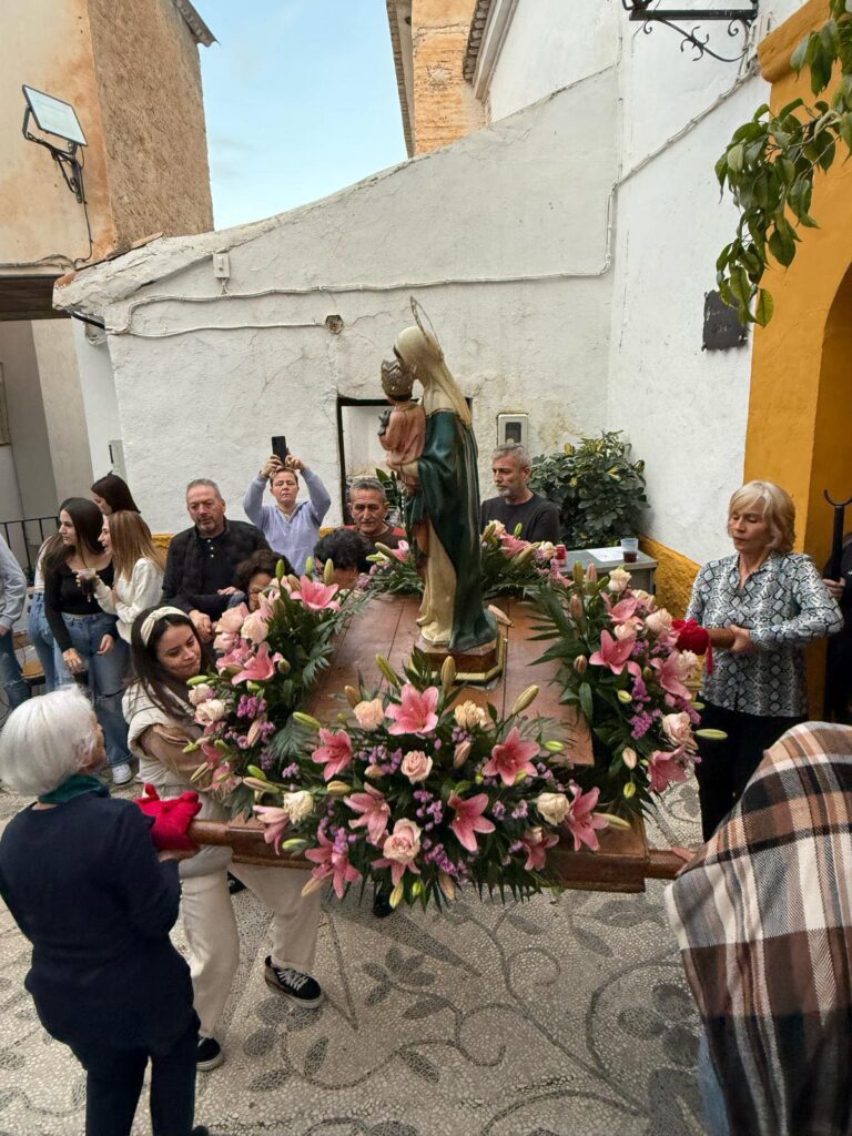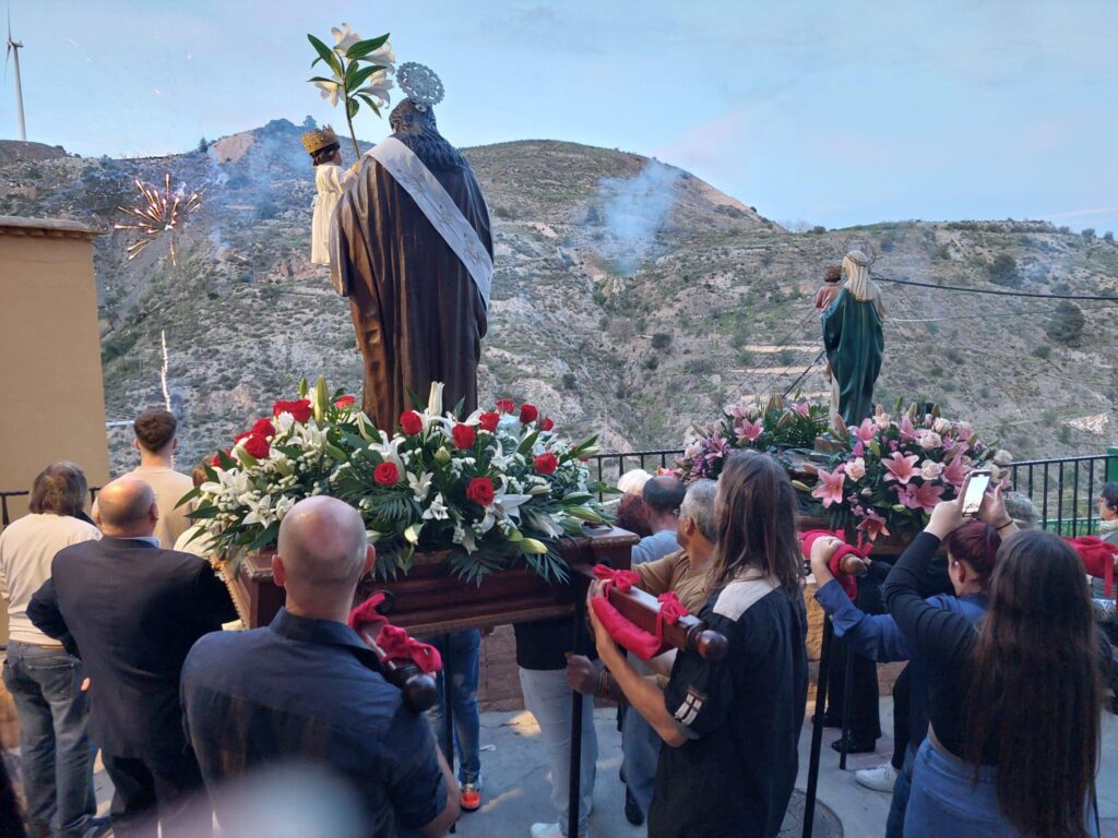 A las 6:30 h dio comienzo la procesión por las calles de la localidad acompañada por la banda de música Granamusic, San José y la Virgen “pasearon” por su pueblo a hombros de sus paisanos y paisanas. Un castillo de fuegos artificiales embelleció el recorrido.