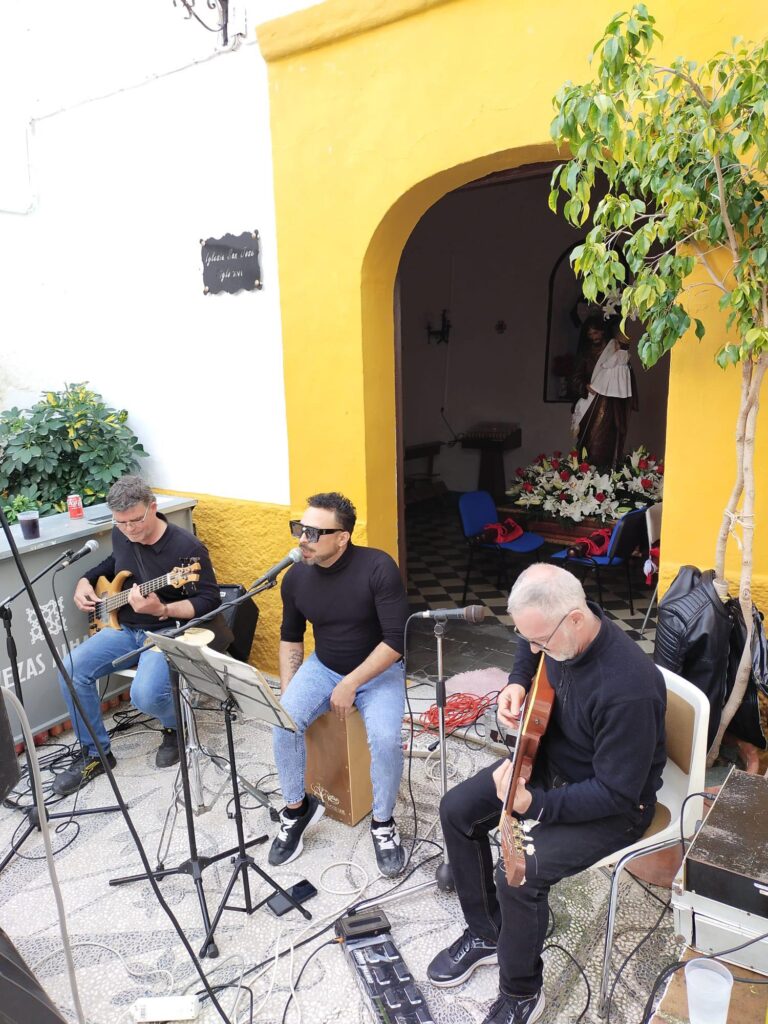 Pasado el mediodía tuvo lugar la apertura de la barra en la puerta de la Iglesia donde se cocinó una paella popular para todos y todas las asistentes a partir de las 15:00 h de la tarde la música tomó el relevo a cargo del grupo de flamenco los Gin Tonic.