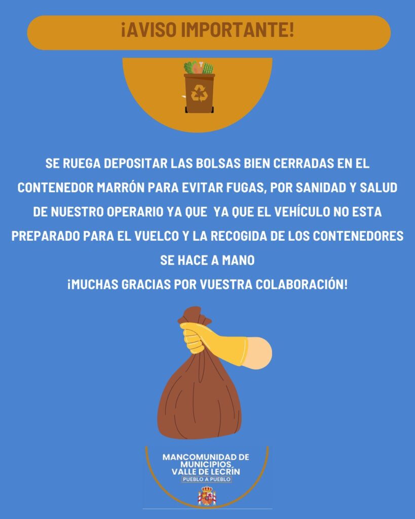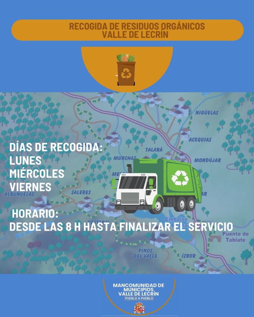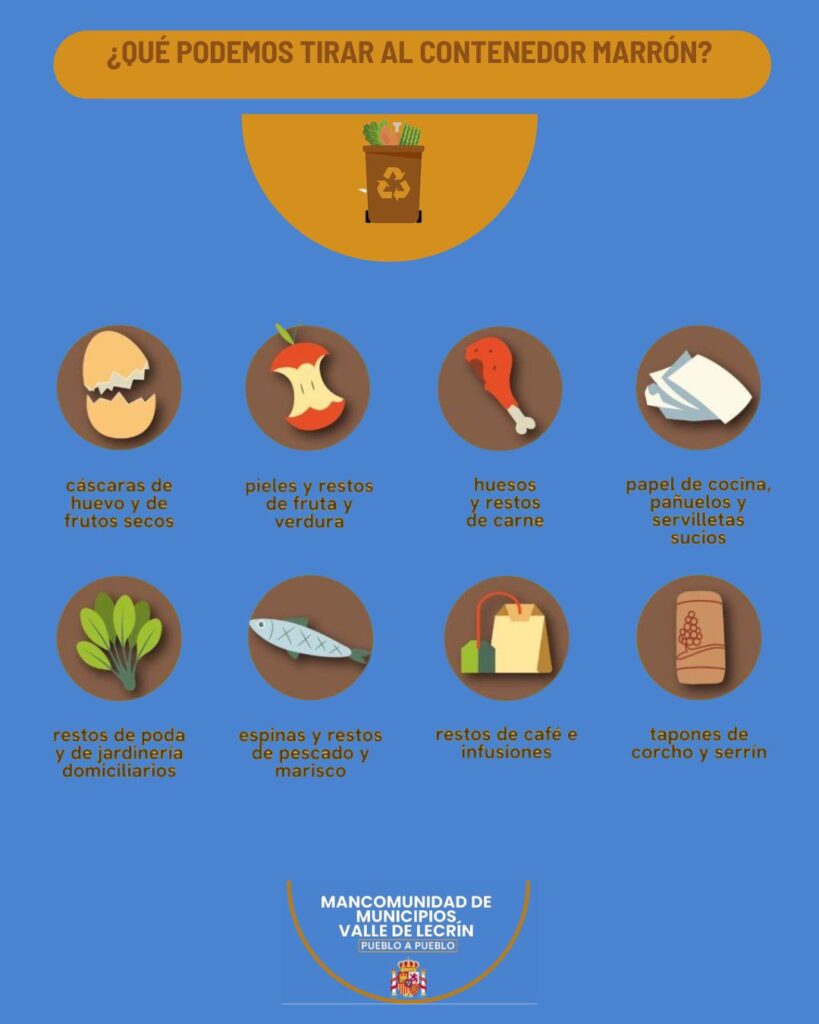 La Mancomunidad de municipios del Valle de Lecrín ha iniciado la recogida selectiva de residuos orgánicos en el contenedor marrón en los seis municipios que tienen mancomunada la recogida de basura: Lecrín, El Pinar, Albuñuelas, El Valle, Nigüelas y Villamena.
