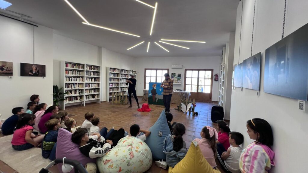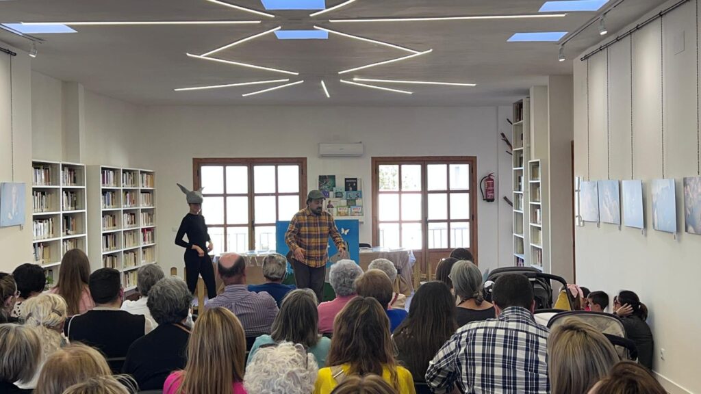 El acto de inauguración de la biblioteca contó con la actuación de Niumpaloal’Arte y su cuentacuentos teatralizado “El viajero y la burrita” en homenaje a Juan Ramón Jiménez y su obra “Platero y yo”