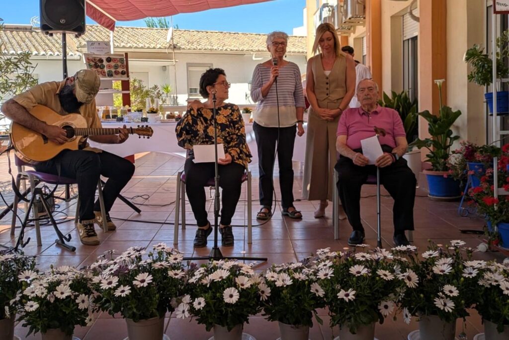 Al acto han asistido la presidenta de la Fundación Juana María Rodríguez Masa, el gerente Andrés Ruiz y los patronos Fernando Rodríguez y José López Gallardo. Se ha tratado de un encuentro intergeneracional que se ha desarrollado en el patio de la residencia y que ha contado con la música del cantautor Manuel Hidalgo.